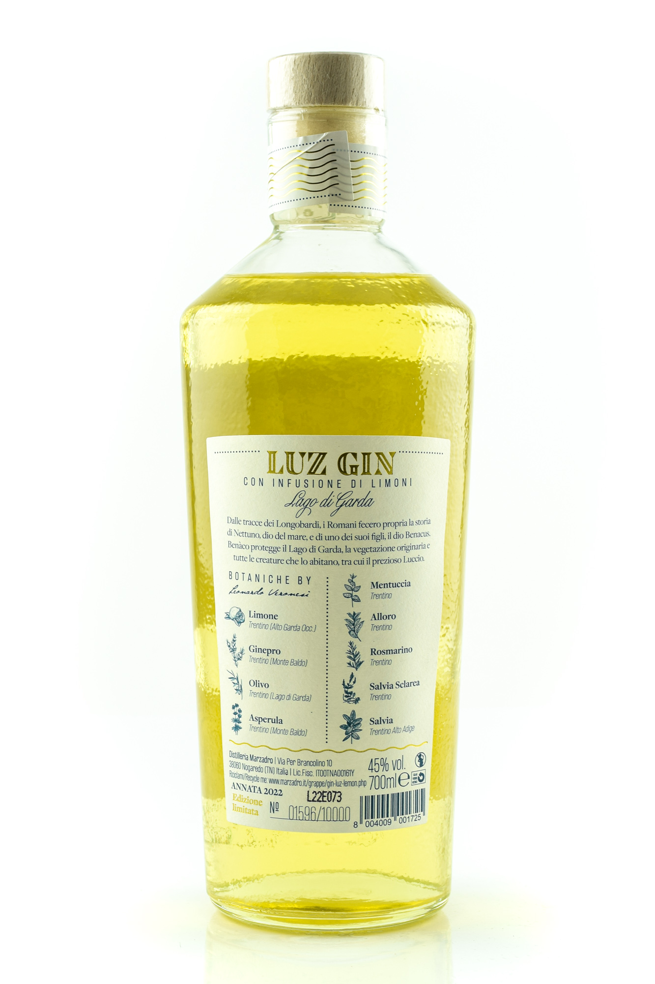 Unter Verwendung von Luz Gin Classico als Basis geht man zur Mazeration in Schalen von Zitronen des Garda über, die sowohl in der Nase als auch dem Gaumen Zitrusnoten sowie eine angenehme Farbe verleiht.