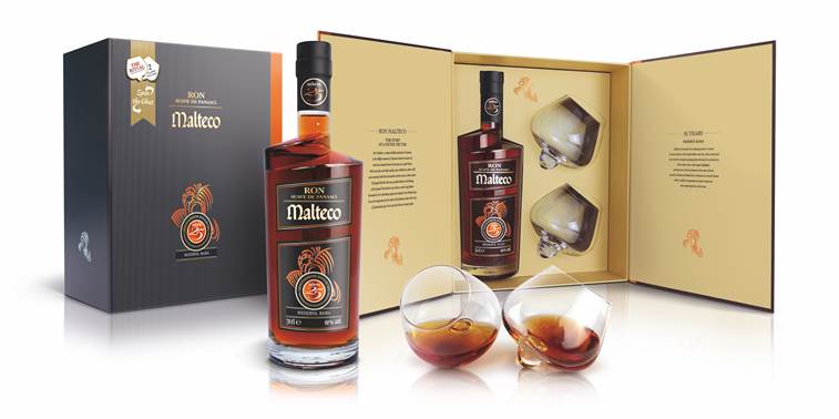 The noble 25-year-old Malteco rum in an elegant gift box with two unusual tasting glasses