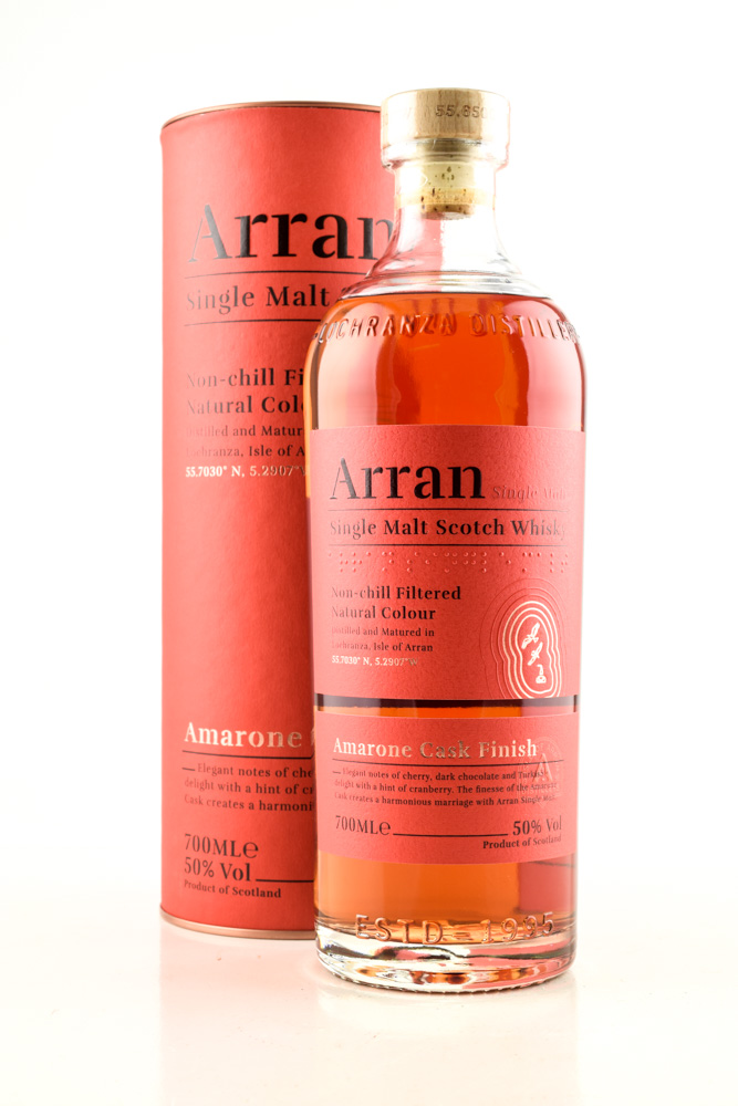 Tolle junge Destille auf Arran, war selbst schon da. Da diese erst 1995 gegründet wurde und in ersten Jahren somit keine alten Malts zur Verfügung standen hat man sich dort auf Cask Finishes spezialisiert. Der Amarone (italienischer Rotwein) ist für mich eine der Besten. Der Wein bringt einen fabelhafte Note in den auch sonst hervorangenden Brennereicharakter! Die über 50 Volumenprozent spürt man fast überhaupt nicht.