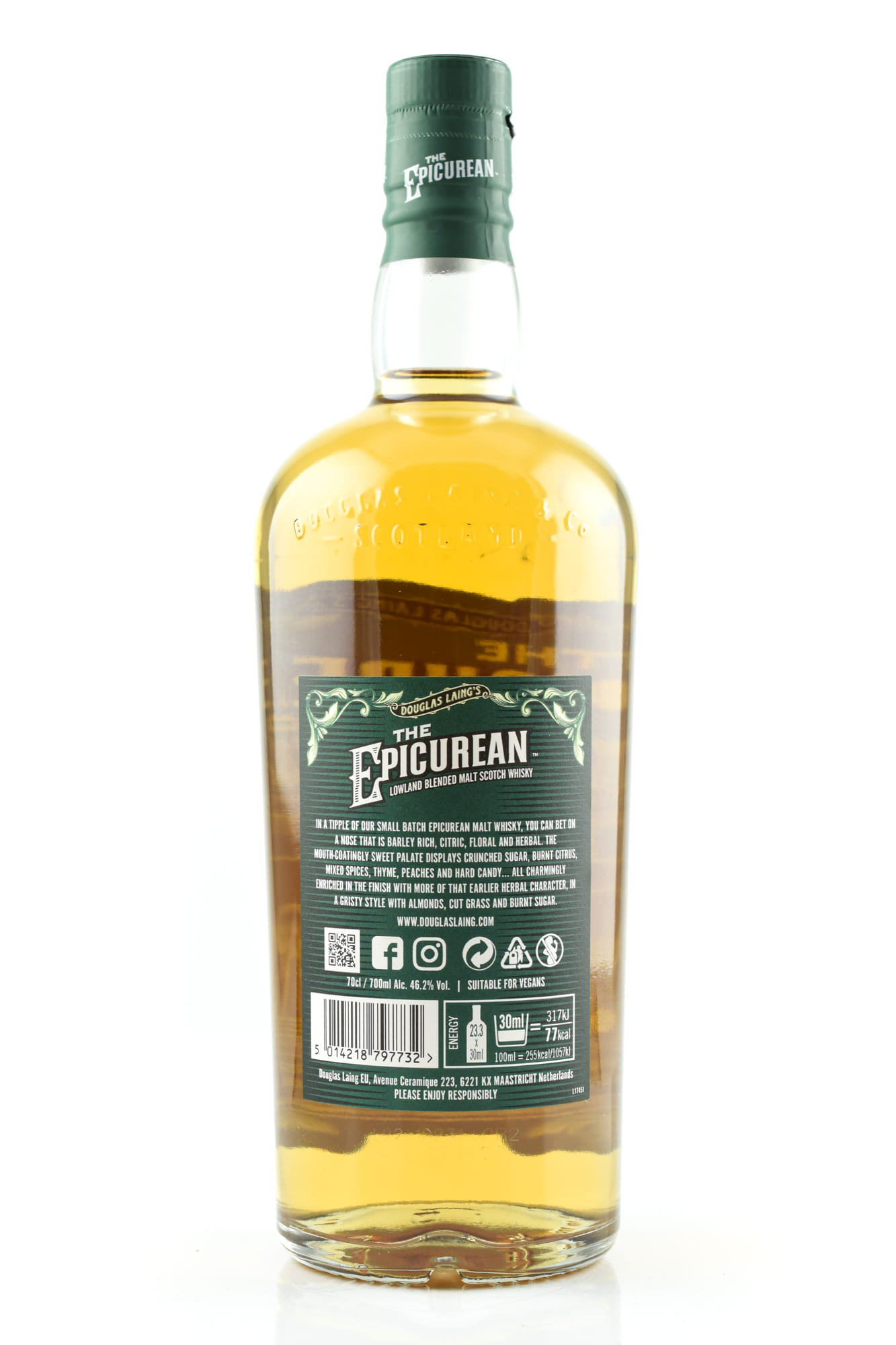 Douglas Laing’s “The Epicurean” vereint das Beste, was die Ost- und Westküste Schottlands zu bieten hat. Ein beeindruckendes Kraftpaket an intensiven Aromen von gemälzter Gerste, Zitrusfrüchten und Kräutern, wunderbar ergänzt um eine Fülle an floralen Noten