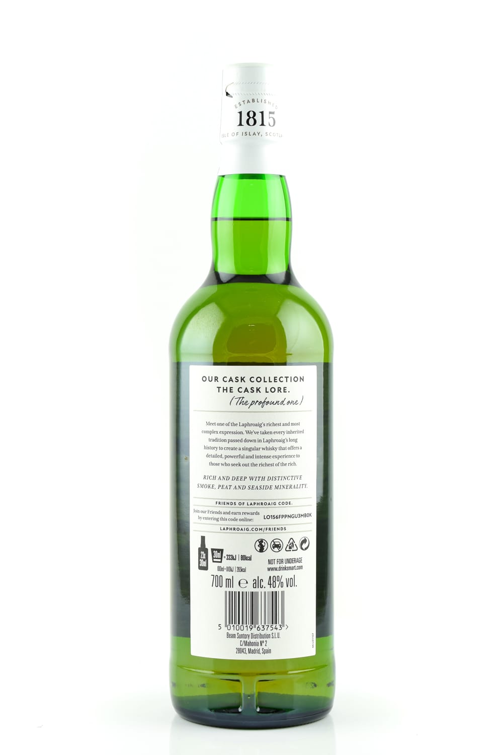 Der Laphroaig The Cask Lore (auf deutsch etwa: Wissen, weitergegebenes oder überliefertes Wissen) ist ein kräftiger Islay Single Malt Whisky, komponiert aus verschiedenen Faßtypen, wie first- und refill Sherry- und Bourbonfässer.