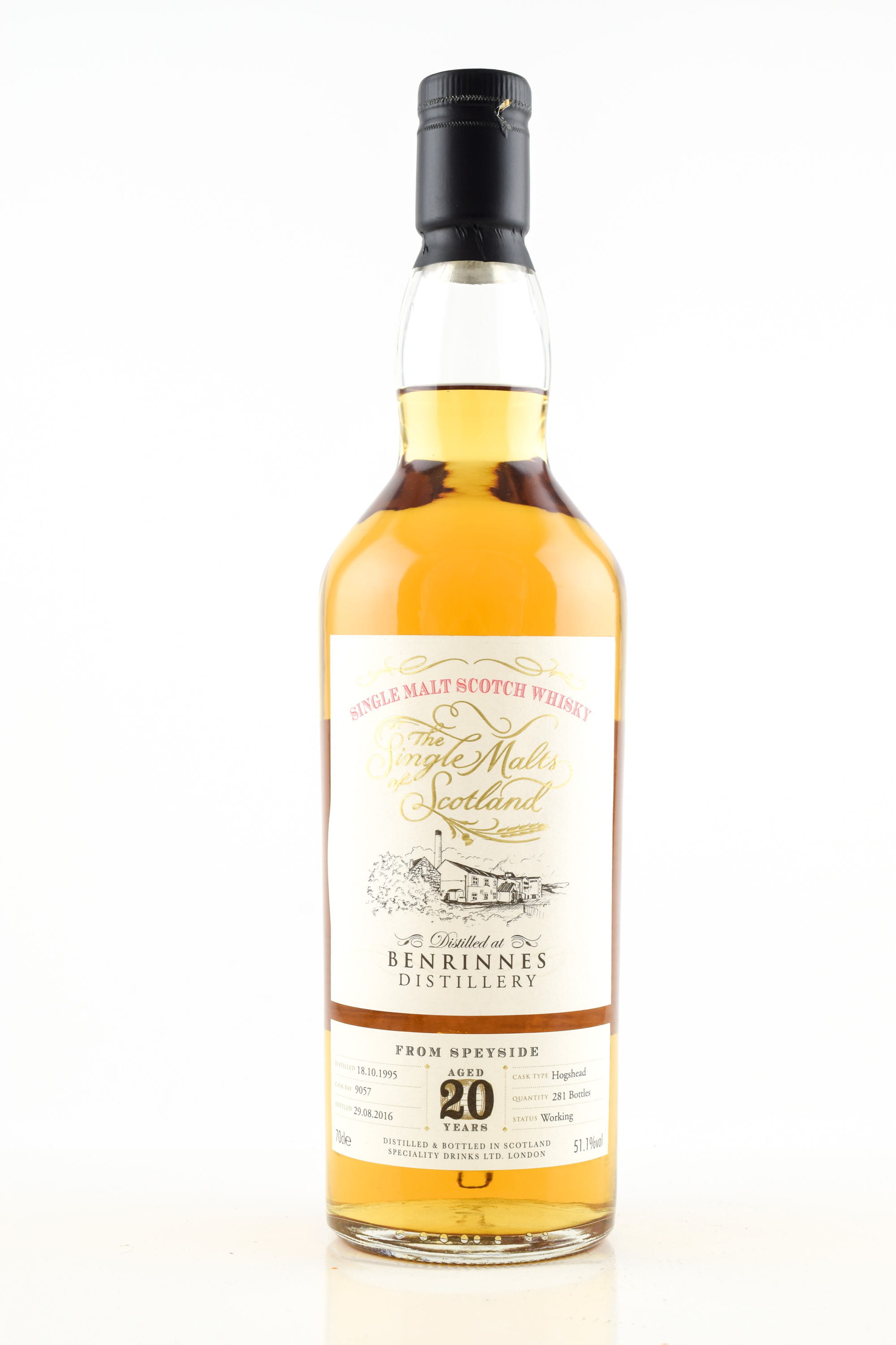 20 Jahre reifte dieser Single Malt Whisky aus der Speyside-Destillerie Benrinnes in einem Hogshead - destilliert am 18.10.1995, abgefüllt am 29.08.2016 auf nur 281 Flaschen.