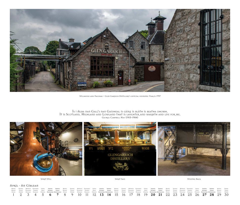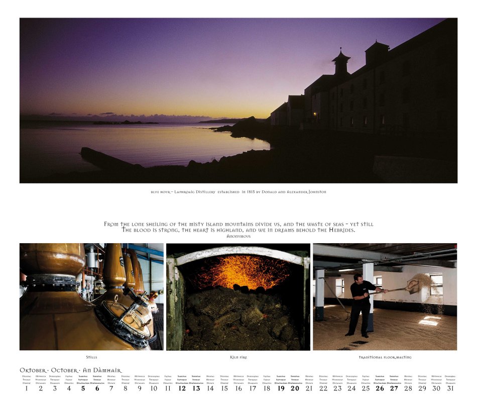 In diesem Kalender sehen Sie Bilder von den Distillerien Balvenie, Bruichladdich, Bunnahabhain, Glengoyne, Talisker und Tobermory - passend dazu viele schöne Landschaftsaufnahmen Schottlands.