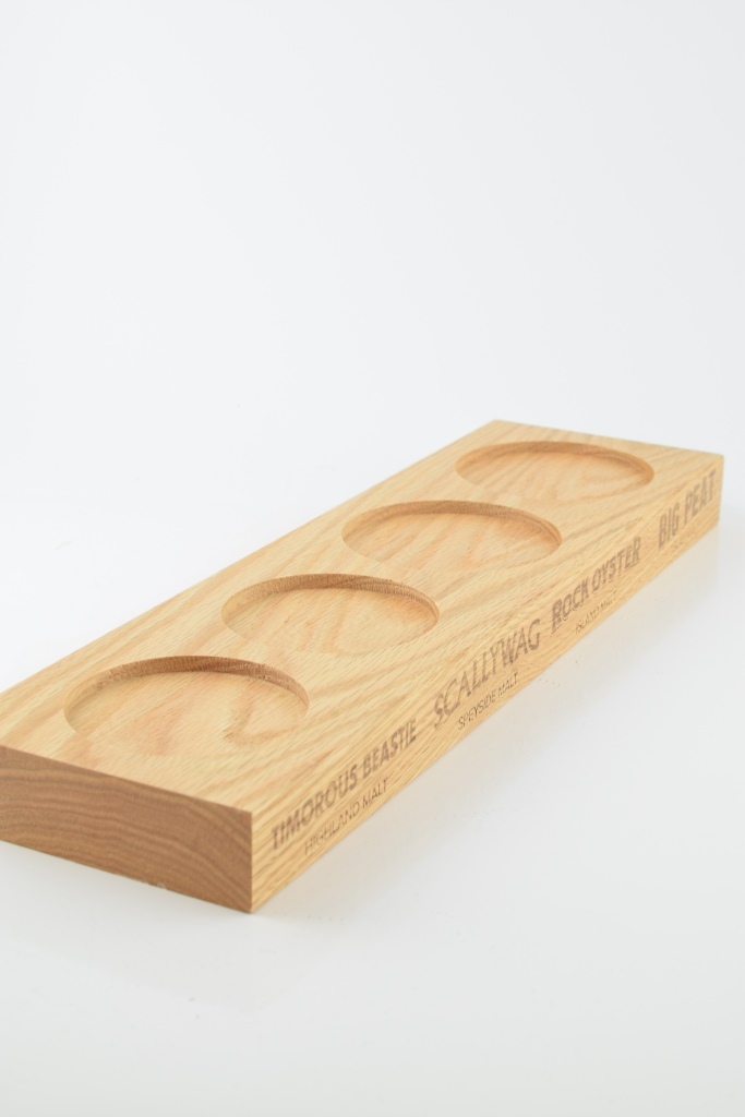 Auf diesem edlen Bar-Display finden die Regional Malts Big Peat, Rock Oyster, Scallywag und Timorous Beastie von Douglas Laing ihren angemessenen Platz.