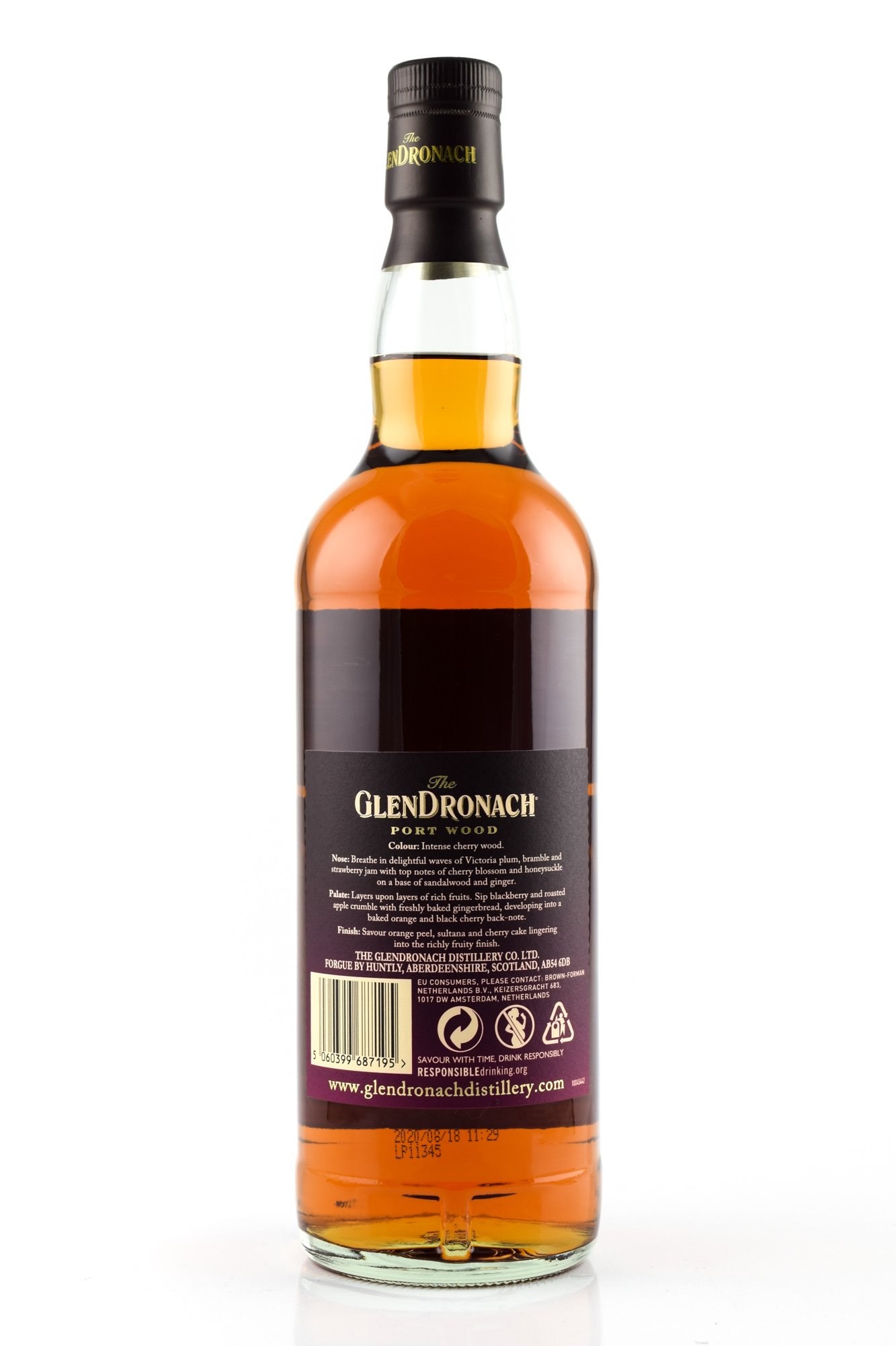 Glendronach's Single Malt Whisky, reifte zunächst in exBourbon-Fässern, anschliessend in exPortweinfässern.