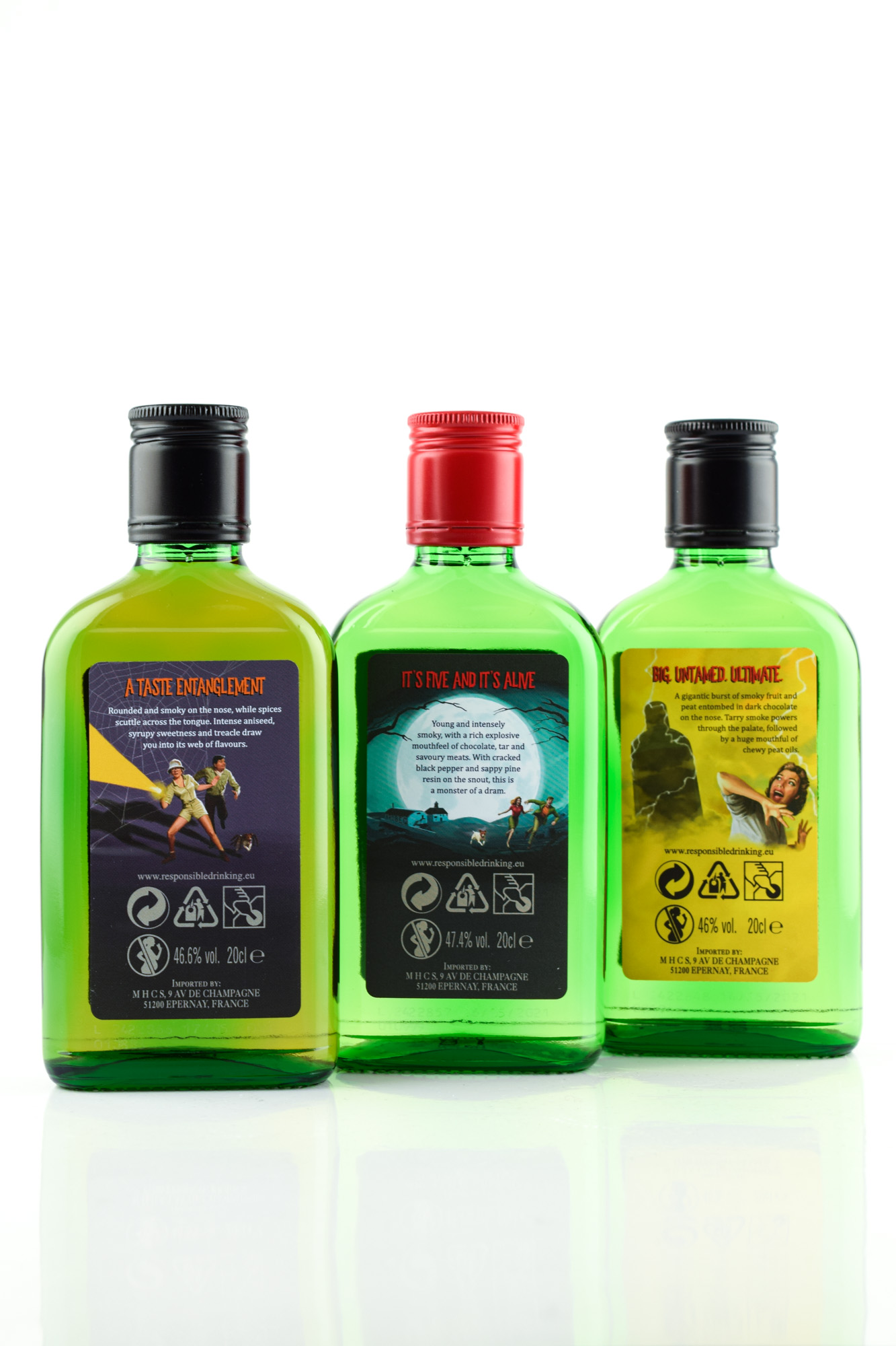 - Für eine perfekte Präsentation: Die drei Flaschen haben ein zweites Etikett, versteckt unter dem Hauptetikett