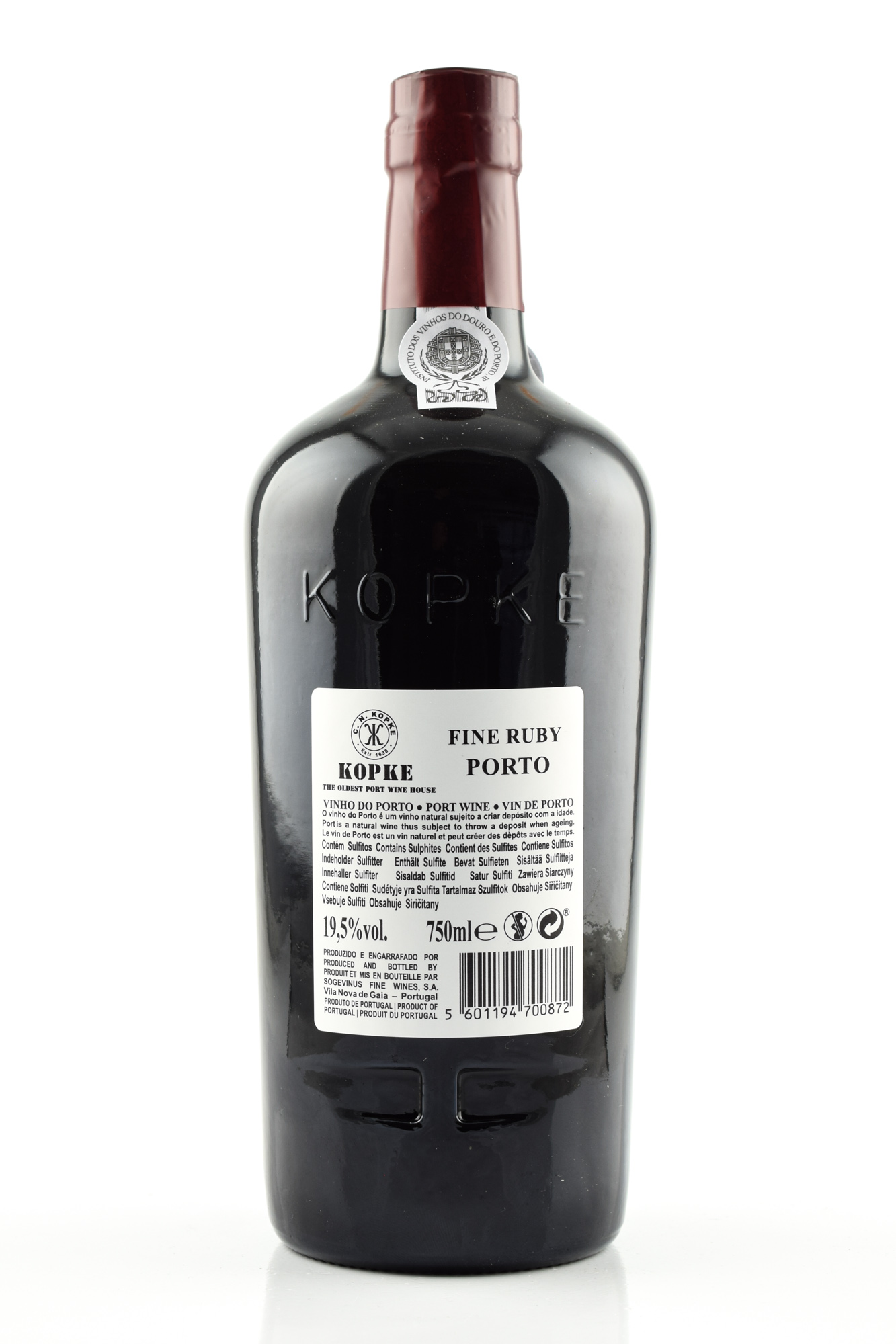 Der Kopke Fine Ruby ist ein Klassiker aus dem Hause Kopke - der Portwein hat eine tiefe rubinrote Farbe mit granatrotem Rand