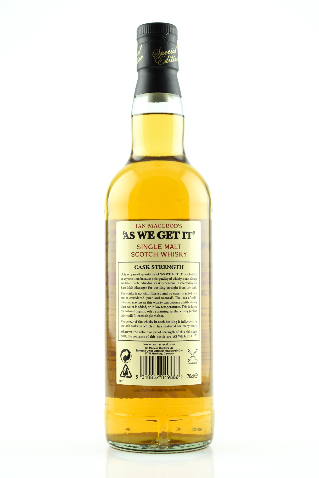 Ian MacLeods beliebte "As we get it"-Reihe ist um einen stolzen Highlander reicher - abgefüllt mit kräftigen 60,6%vol. Alkoholgehalt hat dieser Single Malt Whisky alles, was man von ihm erwartet: fruchtige und stark würzige Aromen, reichhaltig im Geschmack mit süßen fruchtigen Noten und einer eleganten Würzigkeit.
