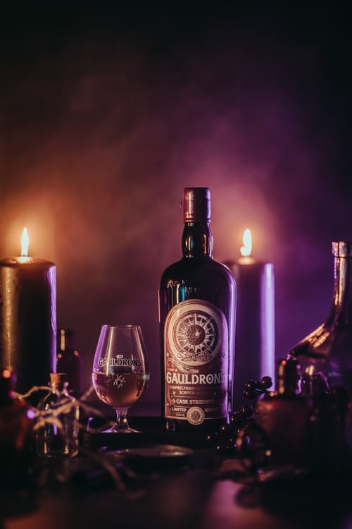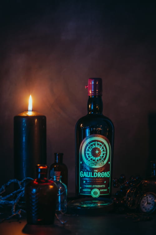 Mit dem schottischen Ausdruck Gauldrons ist in Schottland unweigerlich eine Legende verbunden - so findet man auf der Flasche und der Geschenkpackung ein großes Spinnennetz mit großer Spinne.