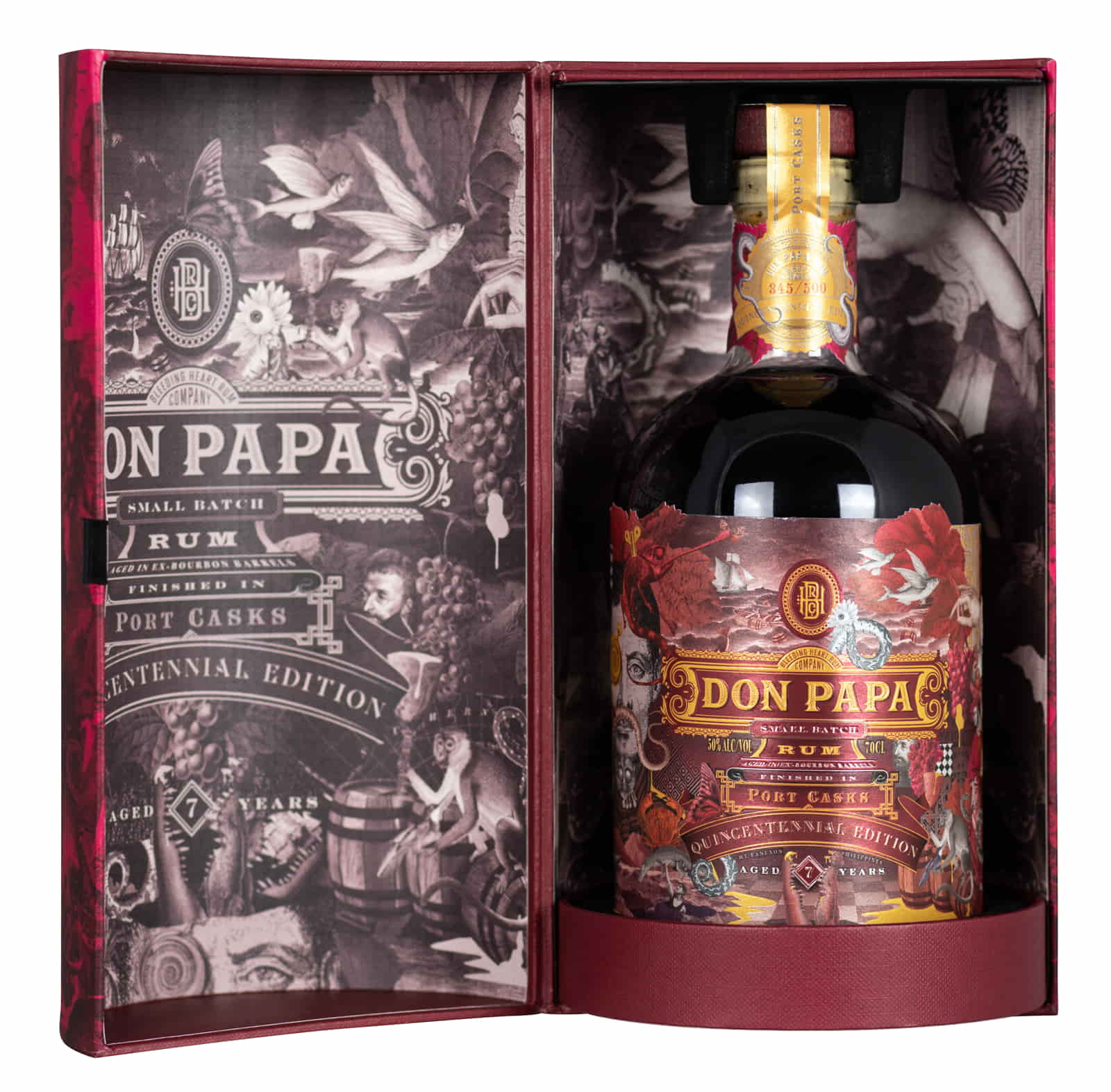Zunächst reift der Don Papa Quincentennial für zwei Jahre in ehemaligen Bourbonfässern. Anschließend wird der Don Papa Quincentennial in Fässer umgefüllt, die zuvor mit reichhaltigem, rotem Ruby Portwein befüllt waren, um darin weitere fünf Jahre zu reifen.