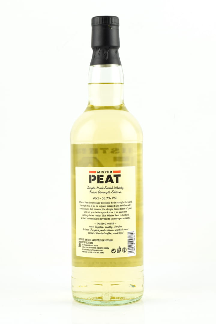 - Unverdünnt abgefüllt, bringt Mister Peat Batch Strength seine Persönlichkeit in ihrer ganzen Intensität zum Ausdruck. Bei einem kraftvollen Alkoholgehalt von 53,7%vol. kombiniert der Single Malt erdige Noten und starken Torfrauch mit zitronigen Anklängen, Malzbrot und geröstetem Kaffee.