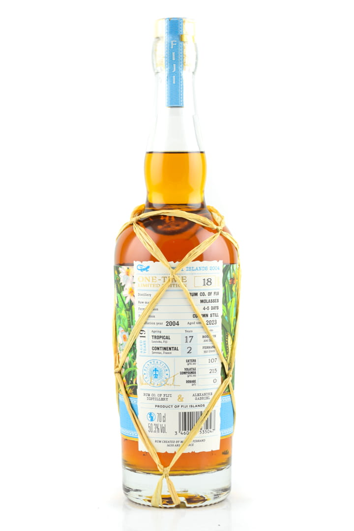 Die Reifung des Plantation Fiji Islands 2004 One Time Limited Edition erfolgte 17 Jahre in amerikanischen exBourbonfässern, mit anschließendem zweijährigem Finish in 350l-Ferrand-exCognacfässern.