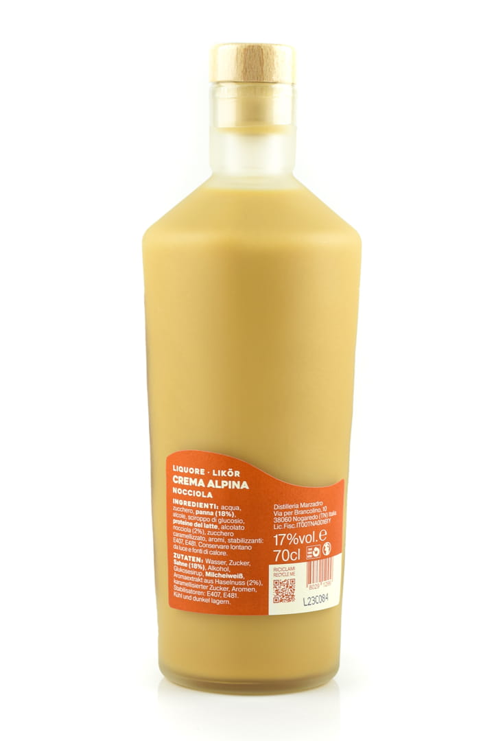 Für den Crema Alpina Nocciola wird frische Sahne aus den Trentiner Almen mit sorgfältig ausgewählten Haselnüssen kombiniert - ein Duo, das fast wie ein kleines Alpentanzpaar wirkt: harmonisch, elegant und mit einem Lächeln auf den Lippen. Die Cremeliköre von Marzadro sind bekannt für ihre milde Art und den moderaten Alkoholgehalt, was sie perfekt für entspannte Genussmomente macht. Ob als Digestif nach einem ausgedehnten Essen, als kleine Inspiration in Desserts und Eis oder als kreative Zutat in originellen Cocktails - dieser Likör zeigt sich vielseitig und unkompliziert.