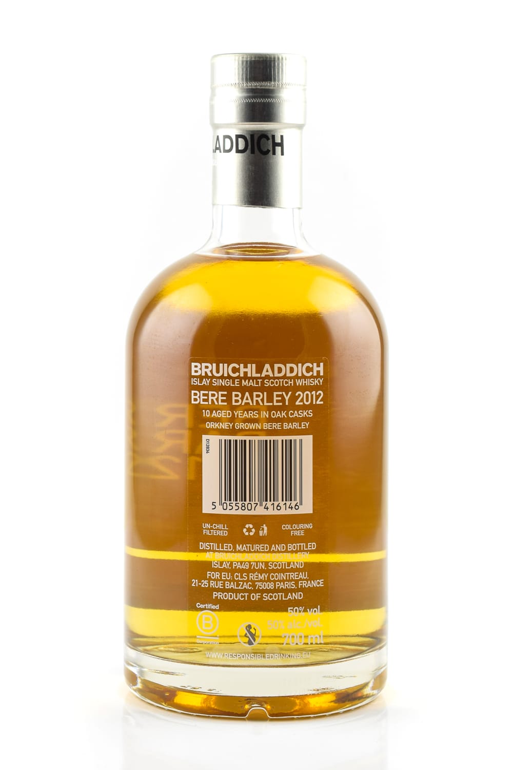 Die Gerste für den Bruichladdich Bere Barley 2012 wurde 2011 auf der Insel Orkney geerntet und im Folgejahr destilliert, um dann am Loch Indaal für zehn Jahre zu reifen. Die Barley Provenance Releases wurden bisher in der Regel nach sechs bis acht Jahren Reife abgefüllt.