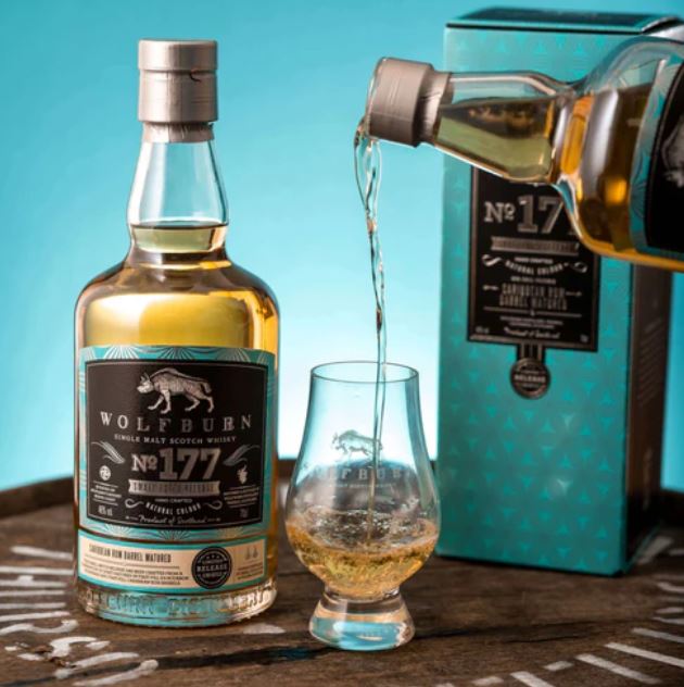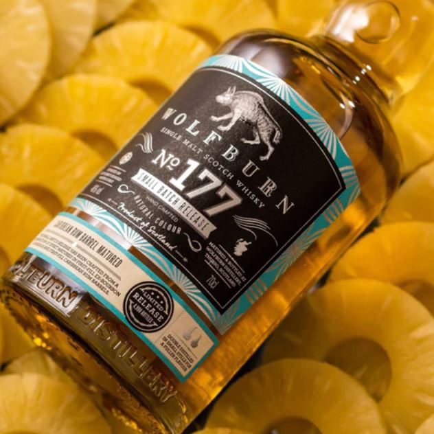 Der Wolfburn No. 177 Small Batch Release kombiniert die sanfte Raffinesse der Bourbon-Reifung mit der einzigartigen Süße und Tiefe der Reifung in Rumfässern.