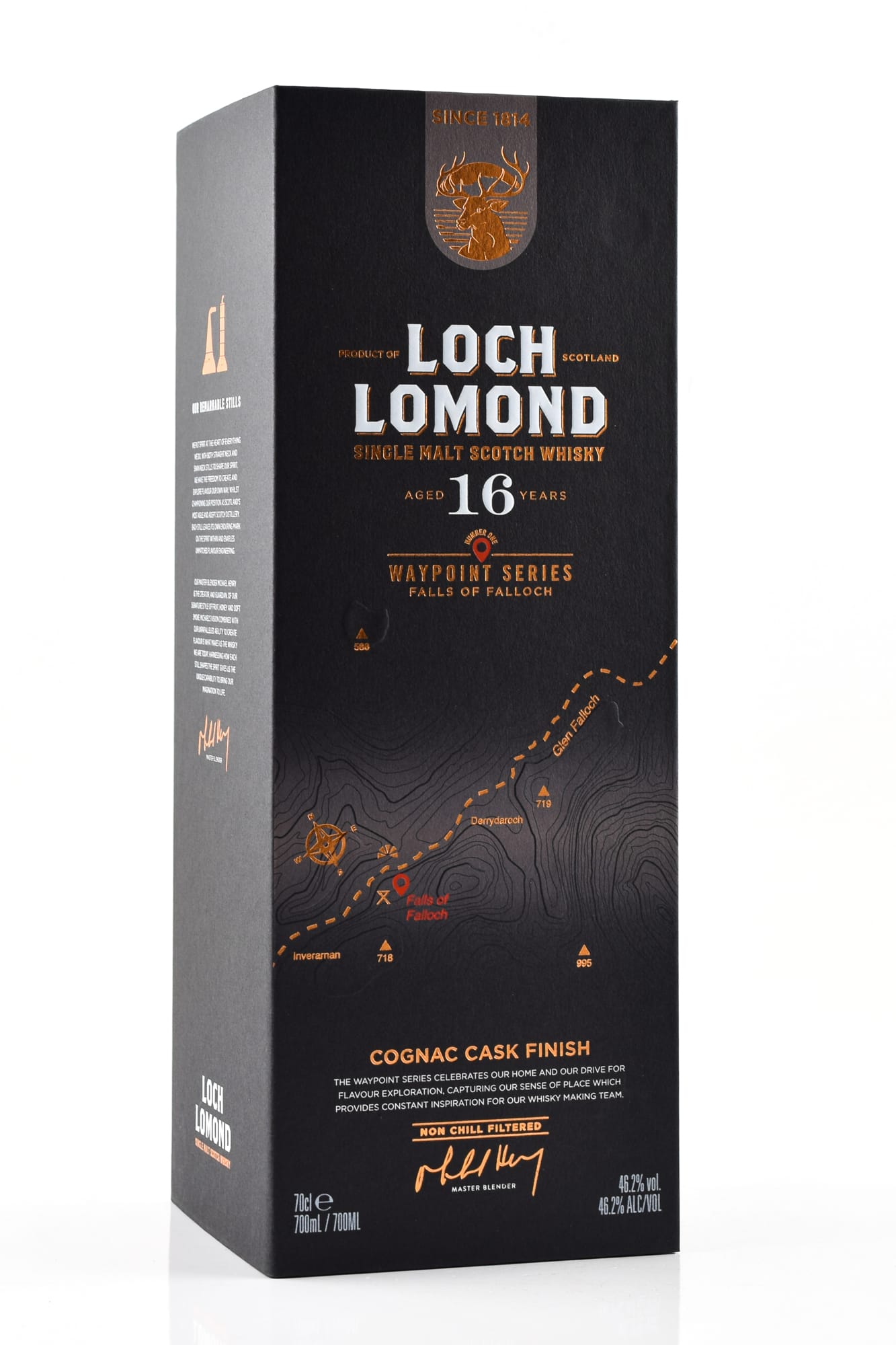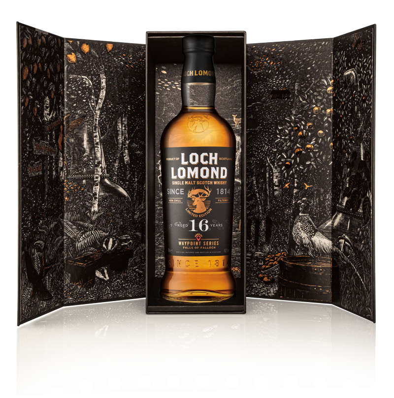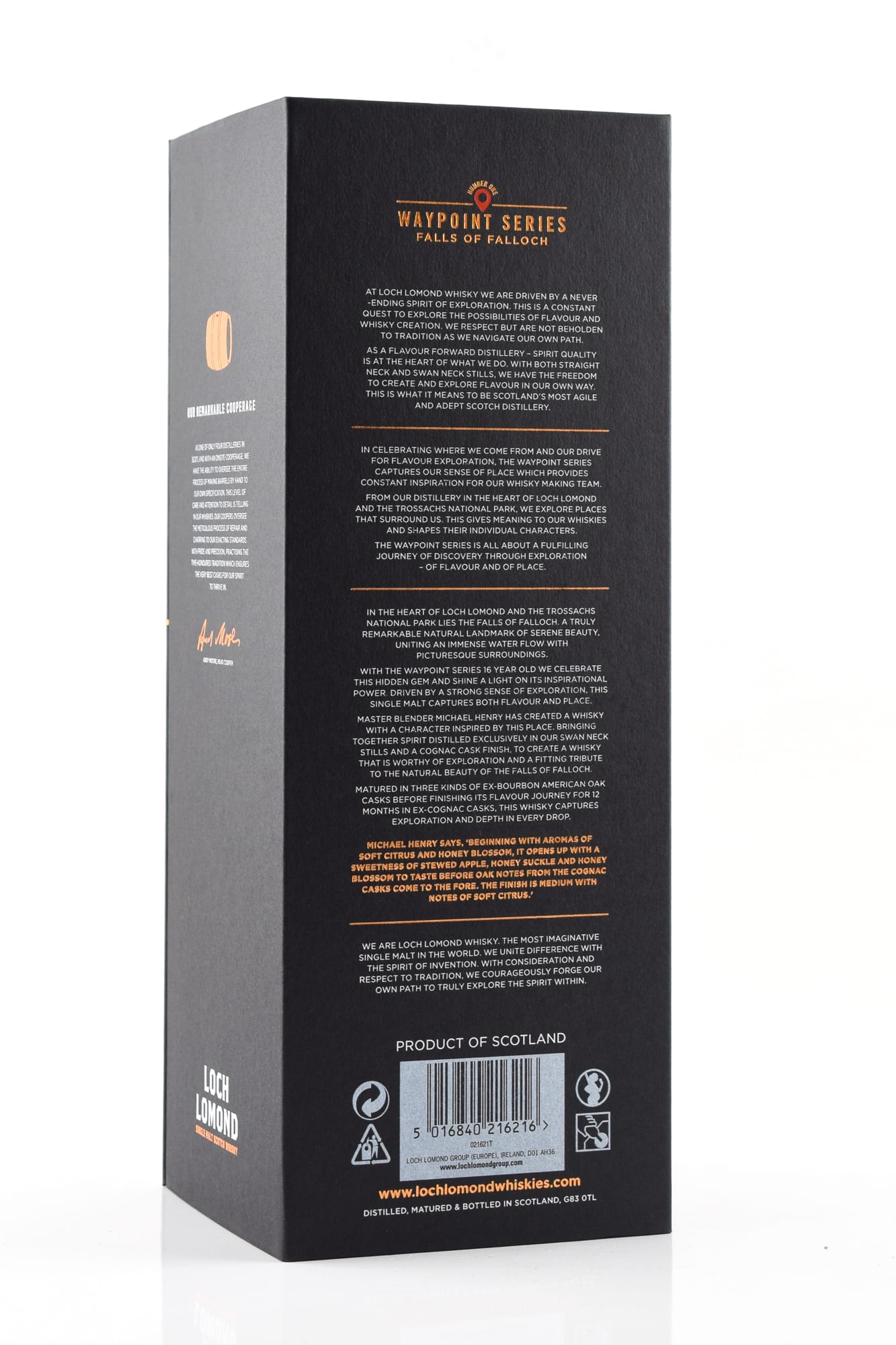 Er zeichnet sich durch seine tiefe natürliche Farbe aus und ist nicht kältefiltert. Im einzigartigen Design präsentiert sich der Loch Lomond 16 Jahre Waypoint Series #1 - Falls of Falloch in einer kupferfolierten Premium-Geschenkbox, die mit dem Illustrator Brett Beacon umgesetzt wurde. Das Design enthält Skizzen der Falls of Falloch im schottischen Nationalpark “The Trossachs” am Loch Lomond.