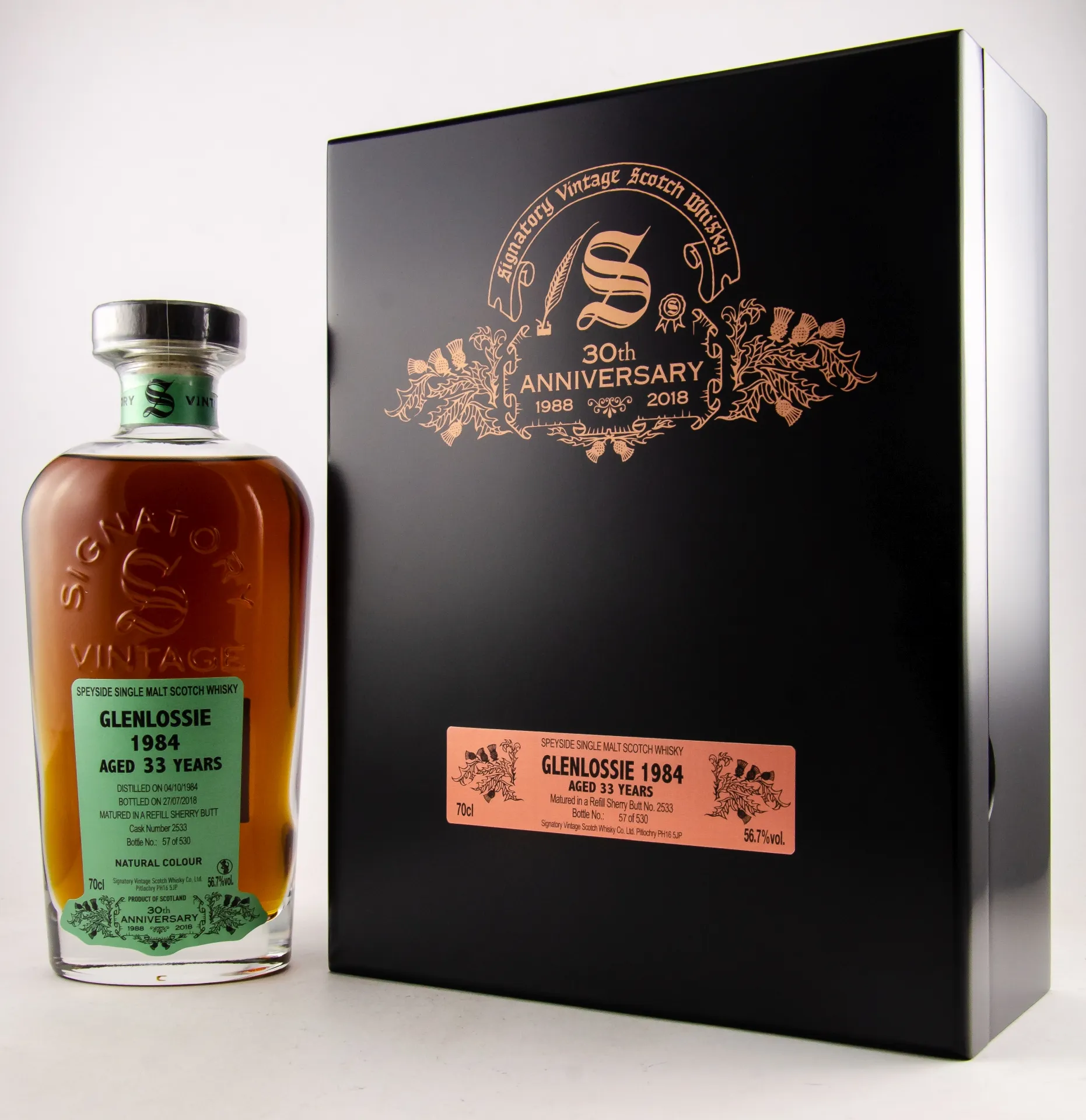 Der Glenlossie 1984/2018 ist ein wahrhaft bemerkenswerter Whisky aus der traditionsreichen Destillerie Glenlossie. Geboren im Jahr 1984, reifte dieser Tropfen über drei Jahrzehnte, bevor er 2018 von Signatory abgefüllt wurde. Sein unverwechselbarer Charakter spiegelt die Reinheit und die tiefen Wurzeln der Speyside-Region wider, die für ihre weicheren und fruchtigen Whiskys bekannt ist.