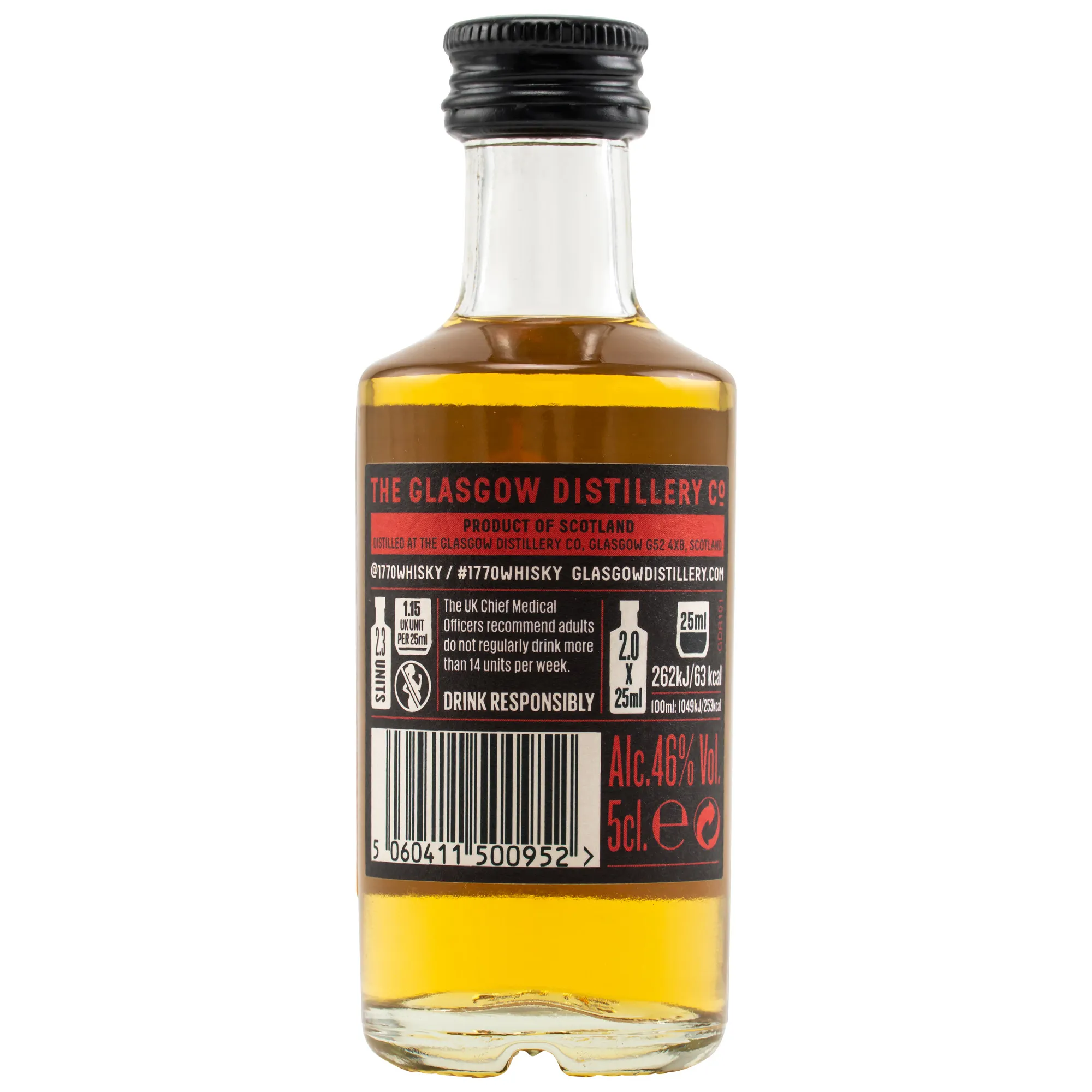 Der Glasgow 1770 - The Original - Mini ist das Herzstück der Glasgow Distillery Co. und verkörpert die Essenz schottischer Whisky-Traditionen. Mit einem Alkoholgehalt von 46% vol. bietet dieser Single Malt Scotch Whisky ein intensives Geschmackserlebnis. Die Fertigung erfolgt im malerischen Lowland Schottland, einer Region, die bekannt ist für ihre milden und fruchtigen Whiskys.