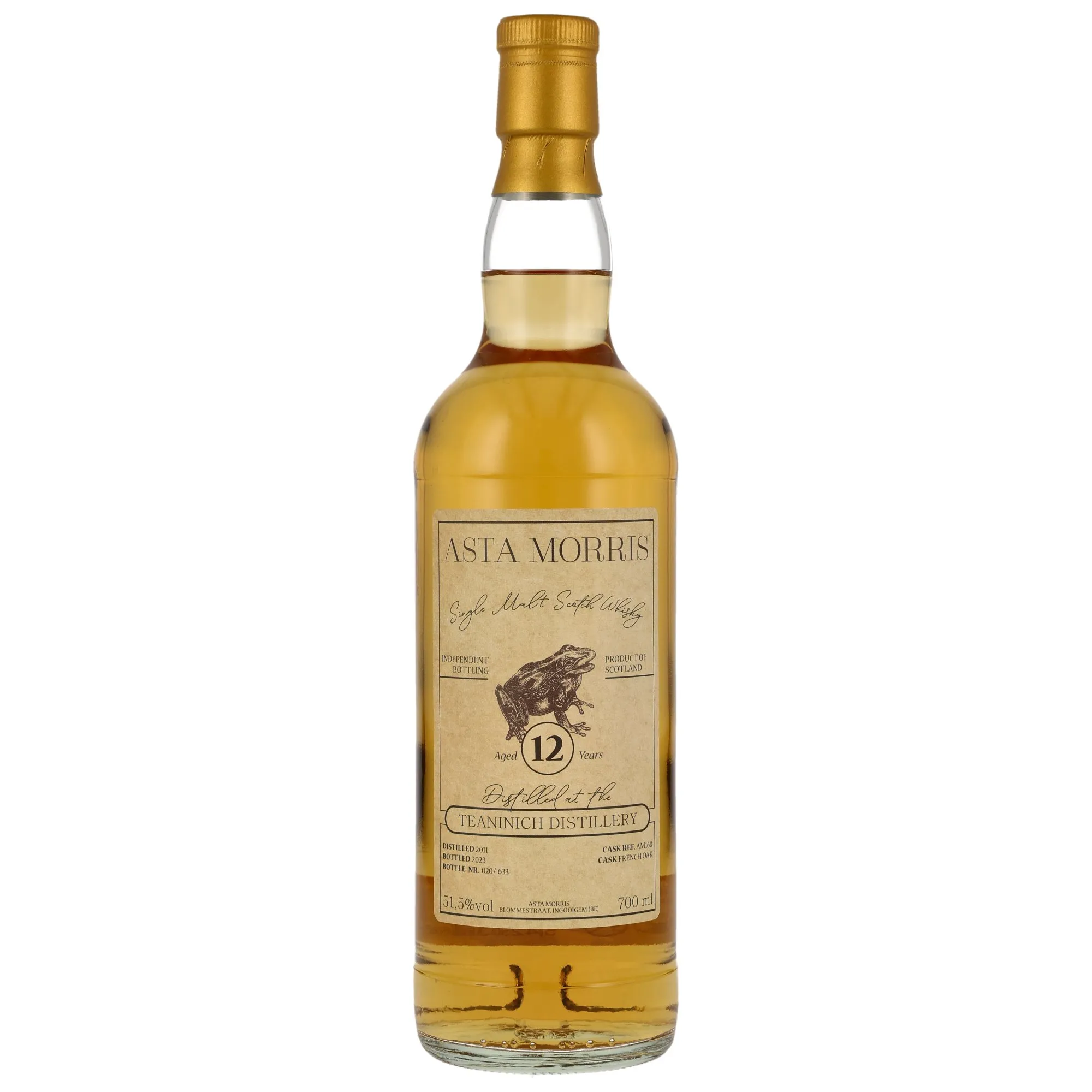 Der Teaninich 2011/2023 - 12 Jahre - #AM160 von Asta Morris ist ein Ausdruck schottischer Handwerkskunst. Hergestellt in der traditionsreichen Teaninich-Destillerie, spiegelt dieser Whisky die rauen, aber wunderschönen Highlands wider, in denen er gereift ist. Seine klare, natürliche Farbe und der unverfälschte Geschmack machen ihn zu einem unverwechselbaren Erlebnis.