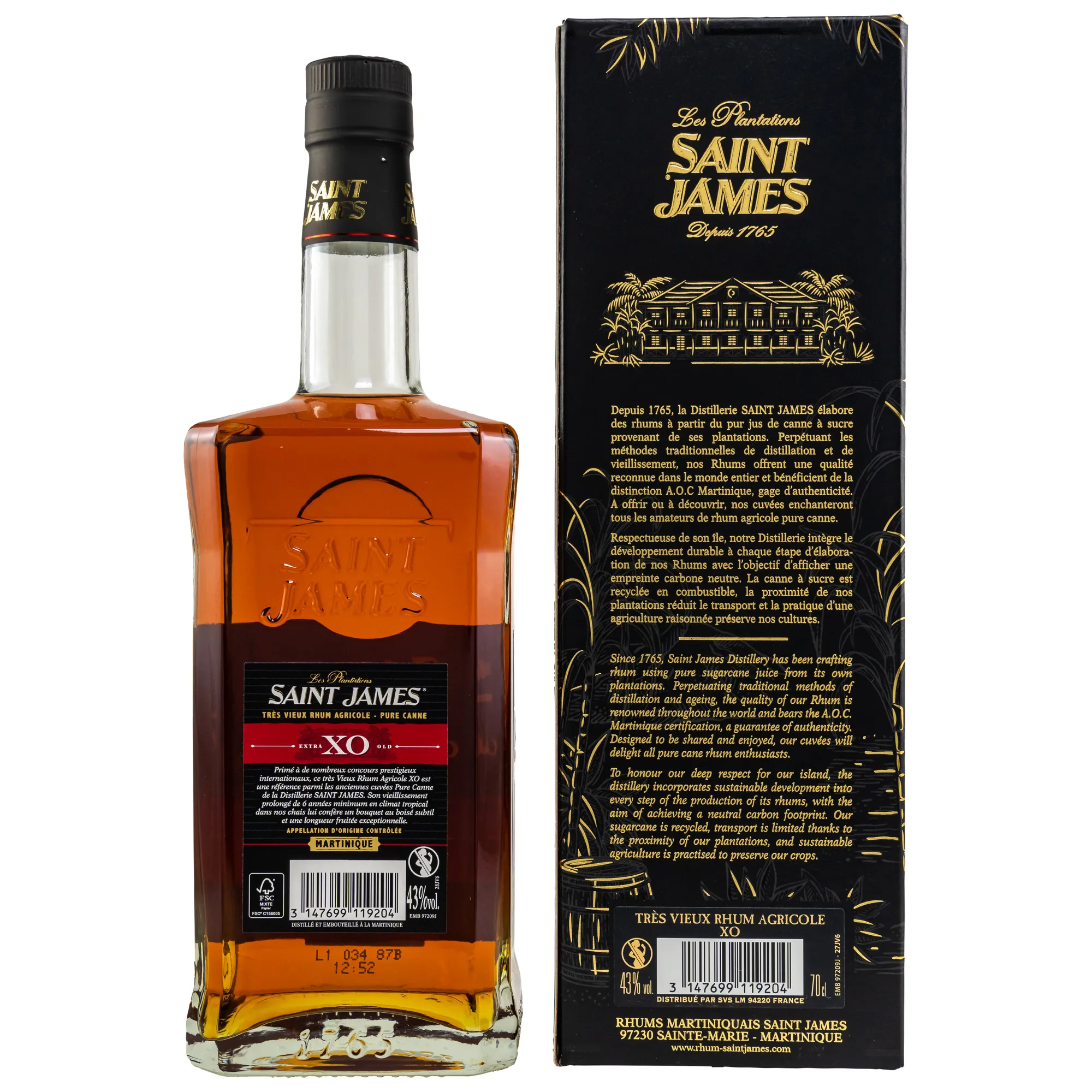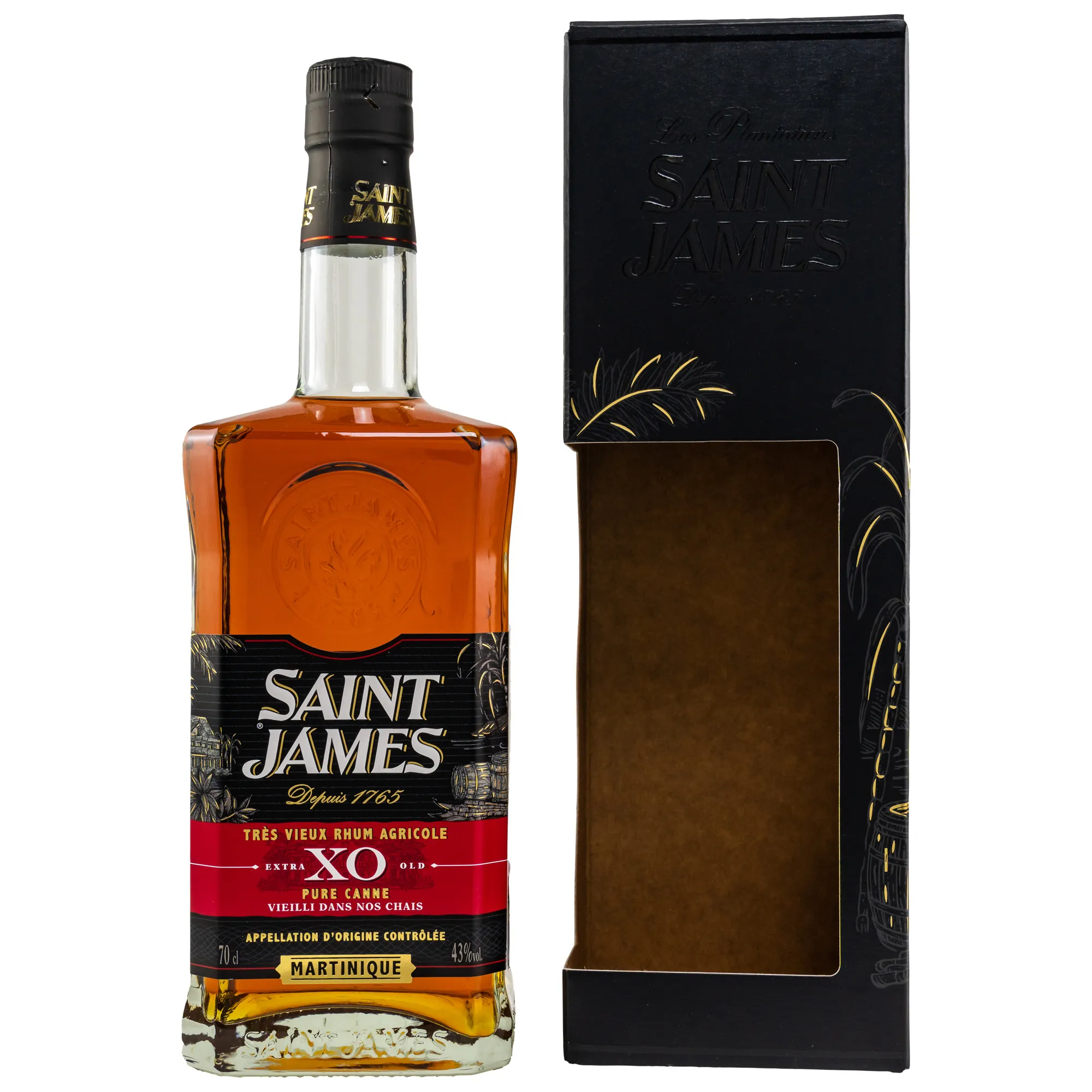 - Reinheit und Klarheit: Ohne künstliche Farbstoffe, bleibt der Saint James XO ein reines, authentisches Erlebnis in jedem Schluck.