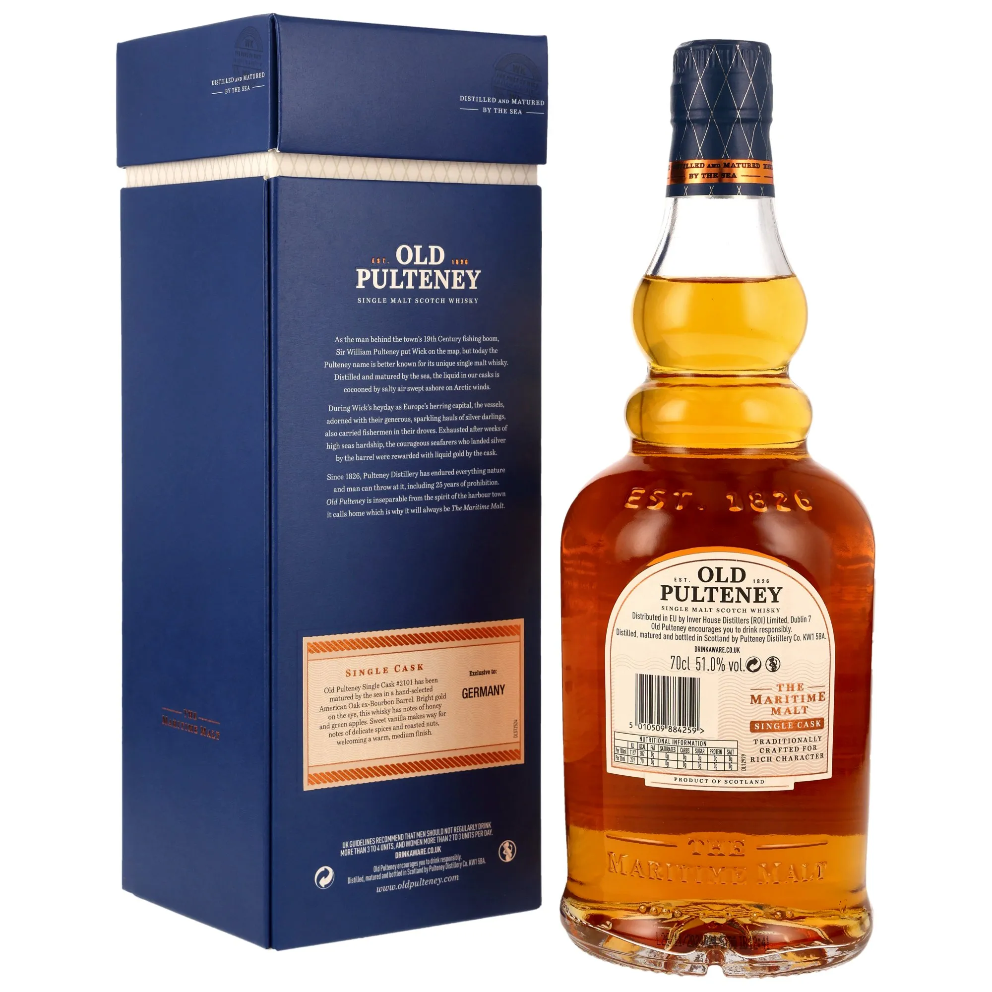 - Schottisches Erbe: Dieser exquisite Whisky stammt aus der traditionsreichen Old Pulteney-Destillerie in den Highlands von Schottland.