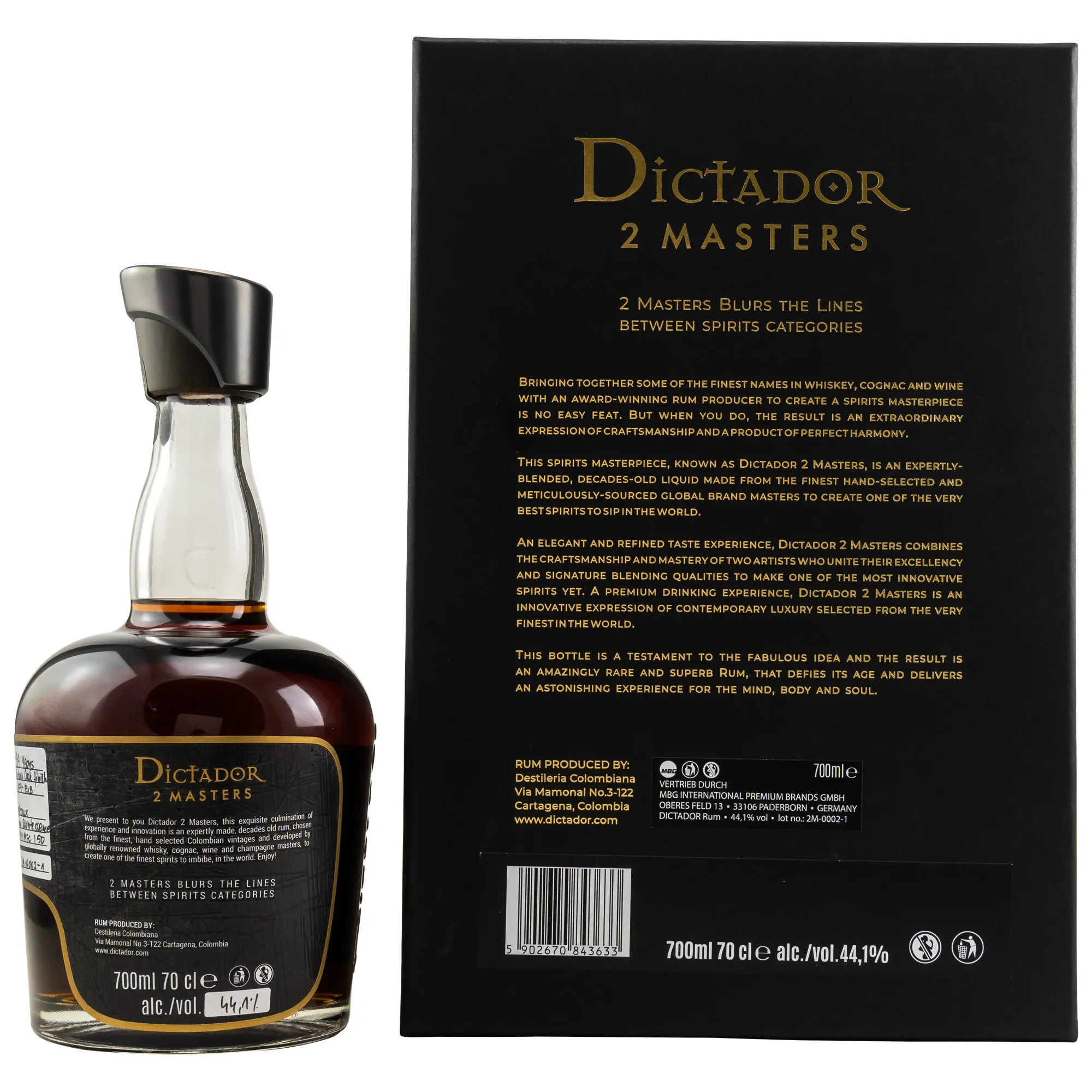 Der Dictador 2Masters Chateau d'Arche 1978/2019 ist ein Meisterwerk der rumproduzierenden Handwerkskunst. Dieser exquisite Rum wurde in Kolumbien destilliert und genießt eine unglaubliche Reifung über 39 Jahre in ausgewählten Eichenfässern. Die lange Lagerung verleiht ihm eine unverwechselbare Persönlichkeit und das harmonische Zusammenspiel von Aromen.