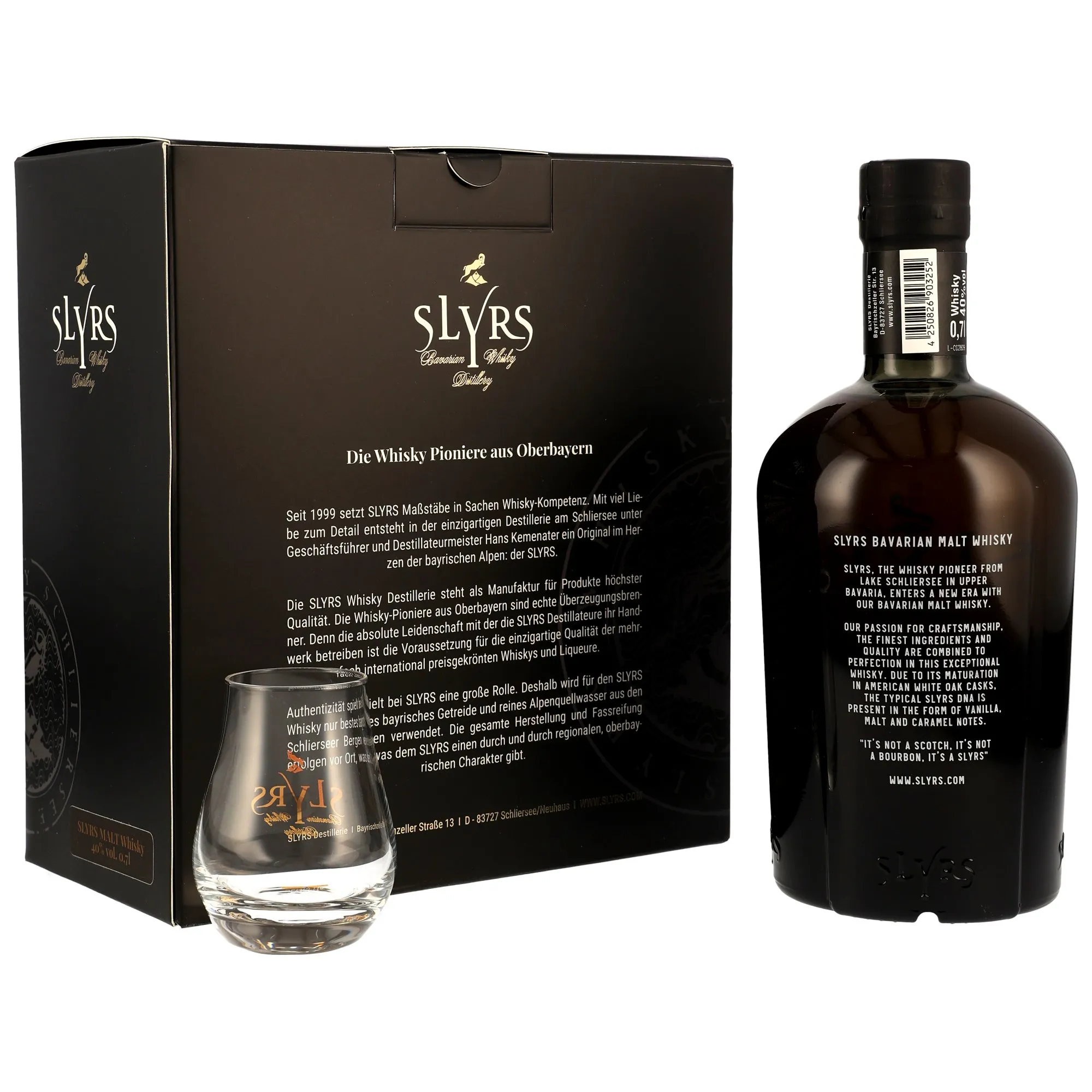 Steckbrief: Der Slyrs Malt Whisky mit Glas im Überblick