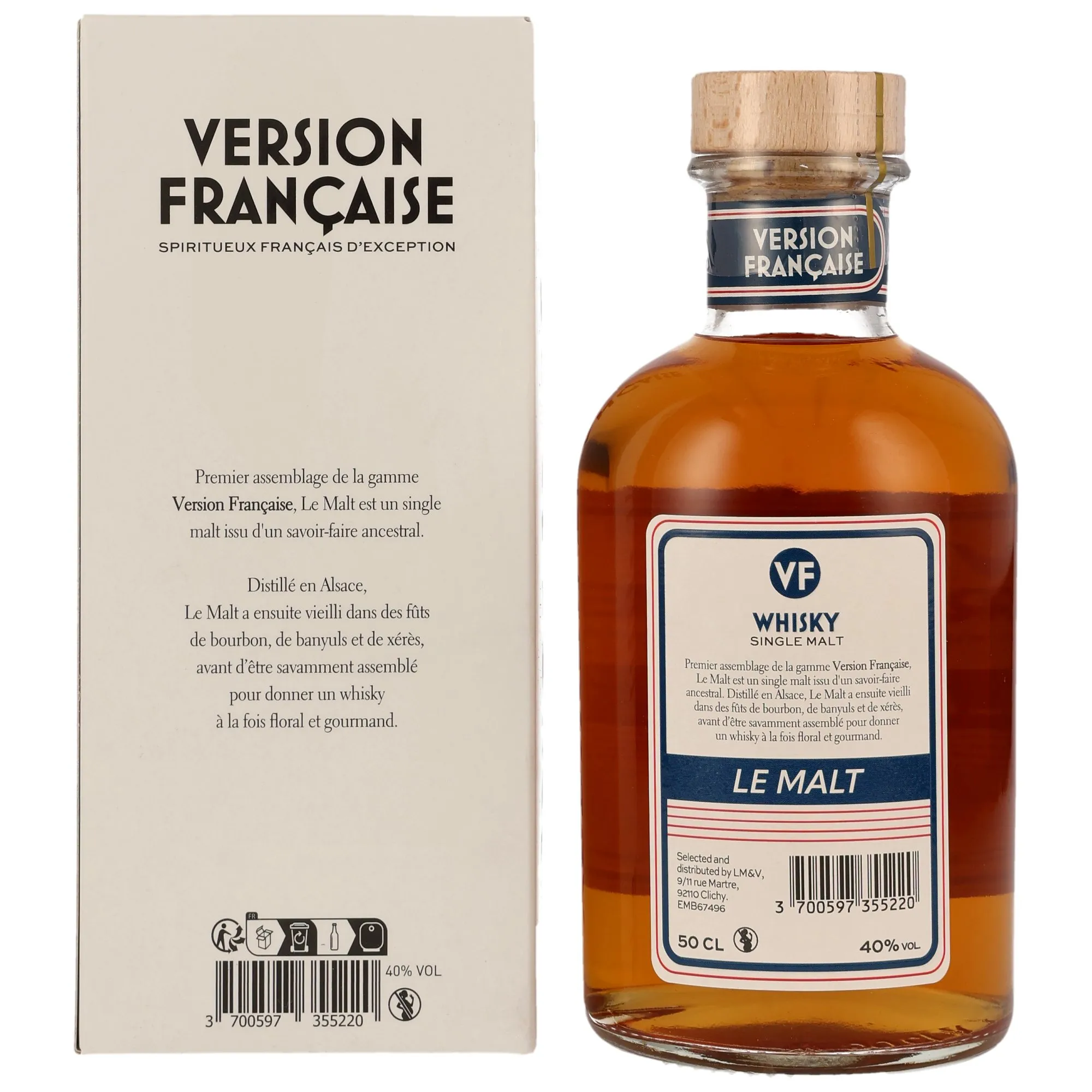 Der Le Malt - Version Francaise ist ein hervorragendes Beispiel für die neue Welle französischer Whiskyproduktion. Mit viel Liebe und Hingabe wird dieser Whisky in einem kleinen mittelständischen Betrieb in Frankreich hergestellt. Hier trifft traditionelle schottische Herstellungsweise auf die einzigartigen klimatischen und geographischen Bedingungen Frankreichs, was einen ganz besonderen Charakter verleiht.