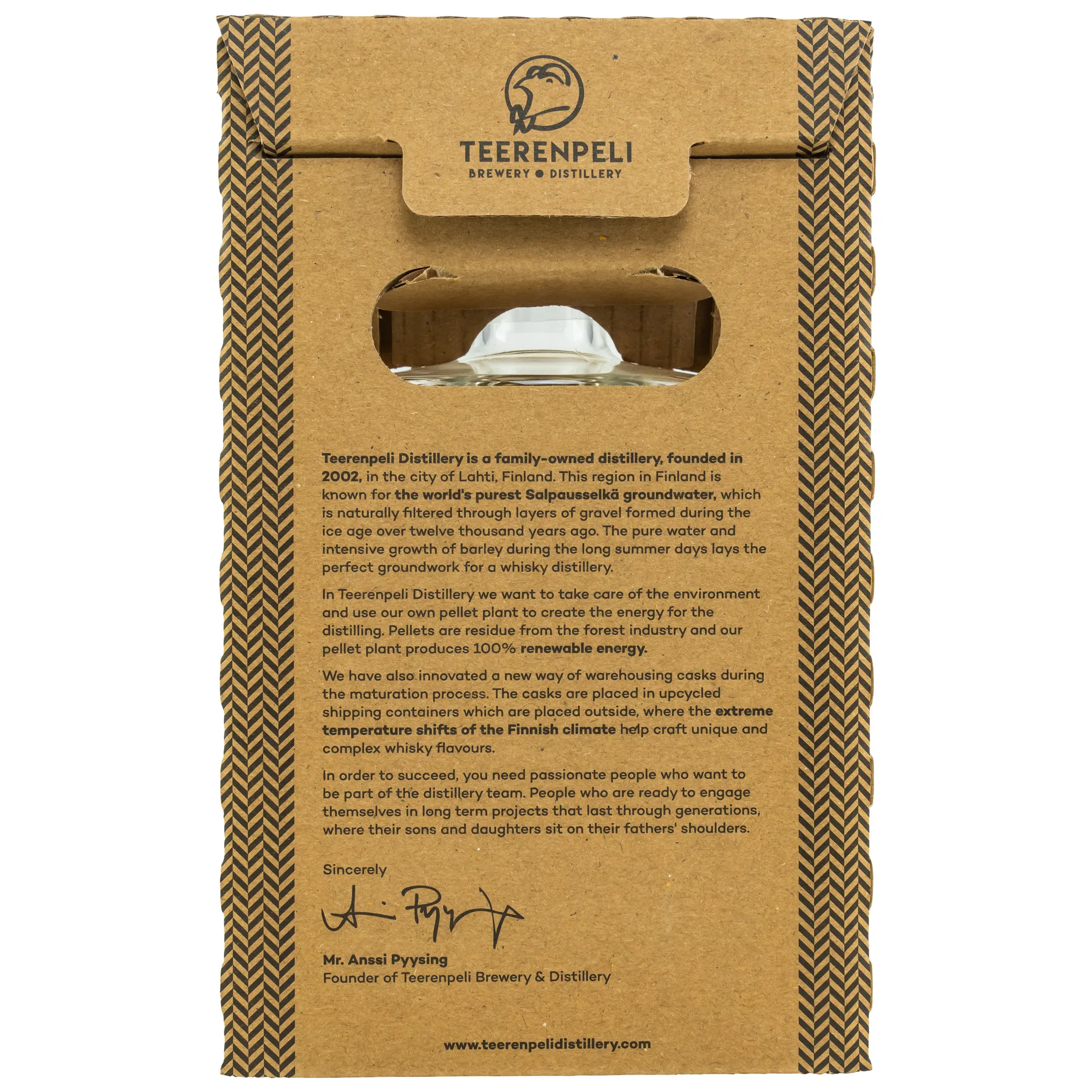 - Ursprung der Exzellenz: Hergestellt in Finnland, verkörpert dieser Whisky die nordischen Traditionen und die Leidenschaft der Teerenpeli-Destillerie.