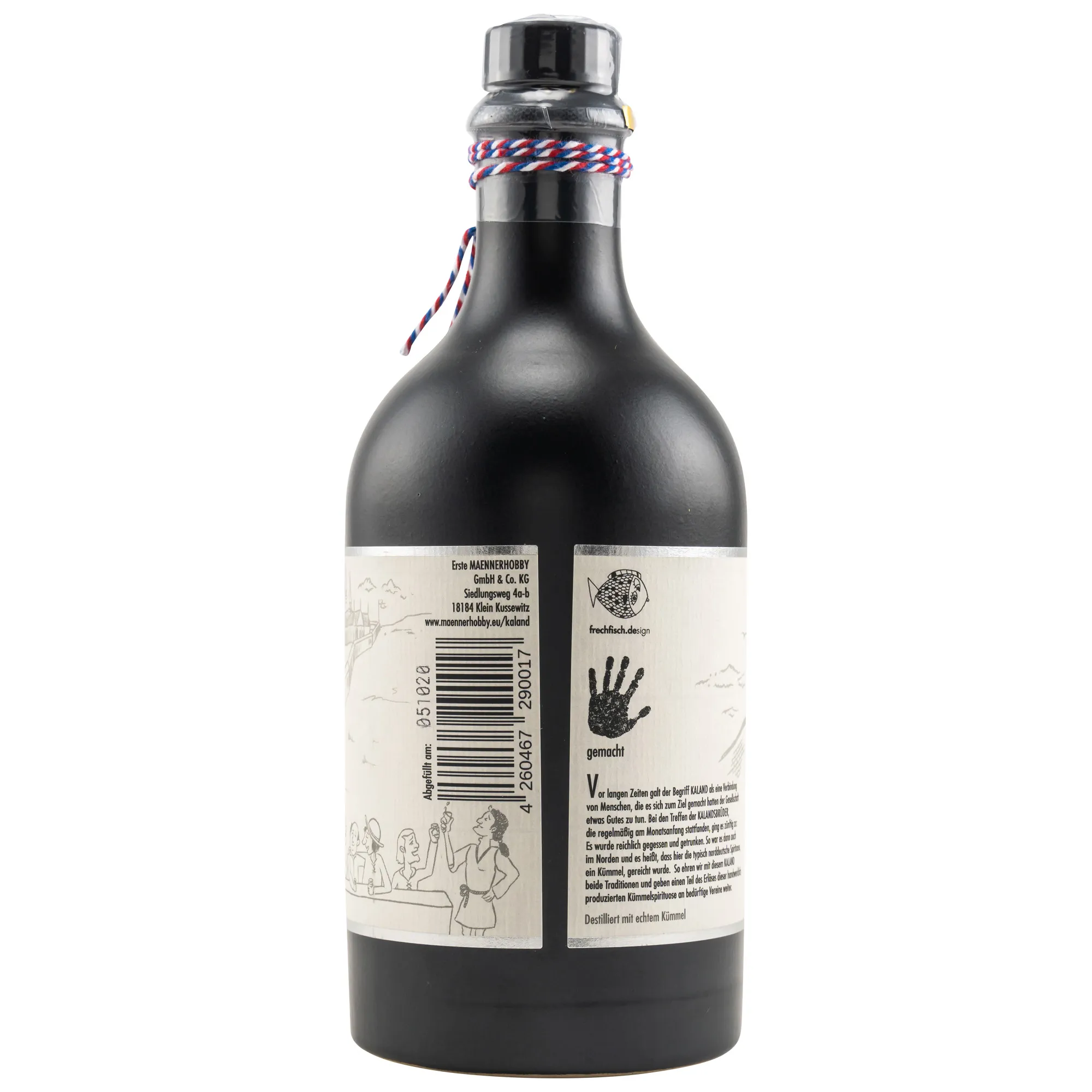 - Herkunft aus Deutschland: Kaland Kümmel wird in der traditionellen Brennerei der ersten Männerhobby GmbH & Co. KG in Klein Kussewitz hergestellt.