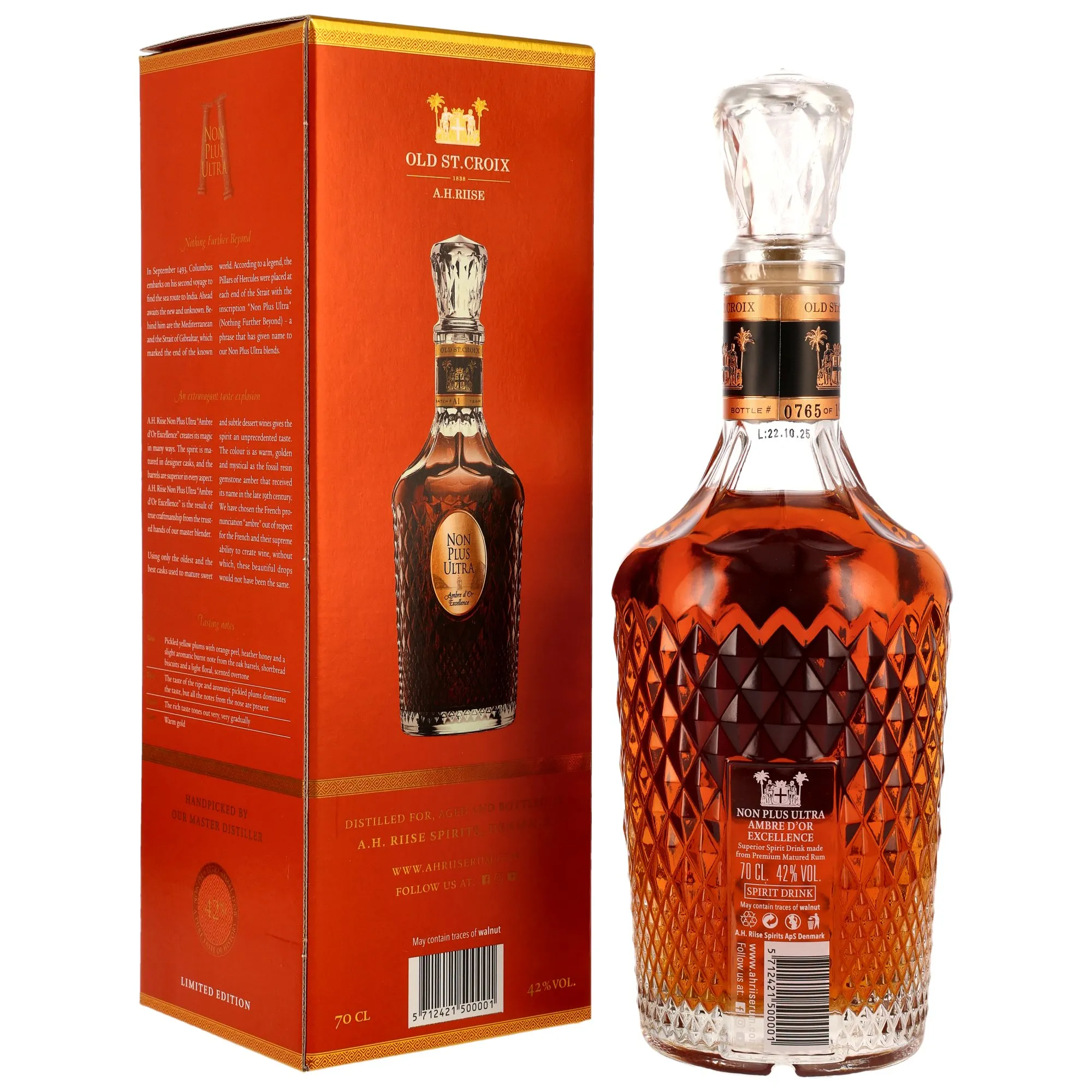 - Ursprung in Dänemark: Dieser exquisite Rum kommt aus den traditionsreichen Brennereien von A.H. Riise, die für ihre handwerkliche Fertigung bekannt sind.