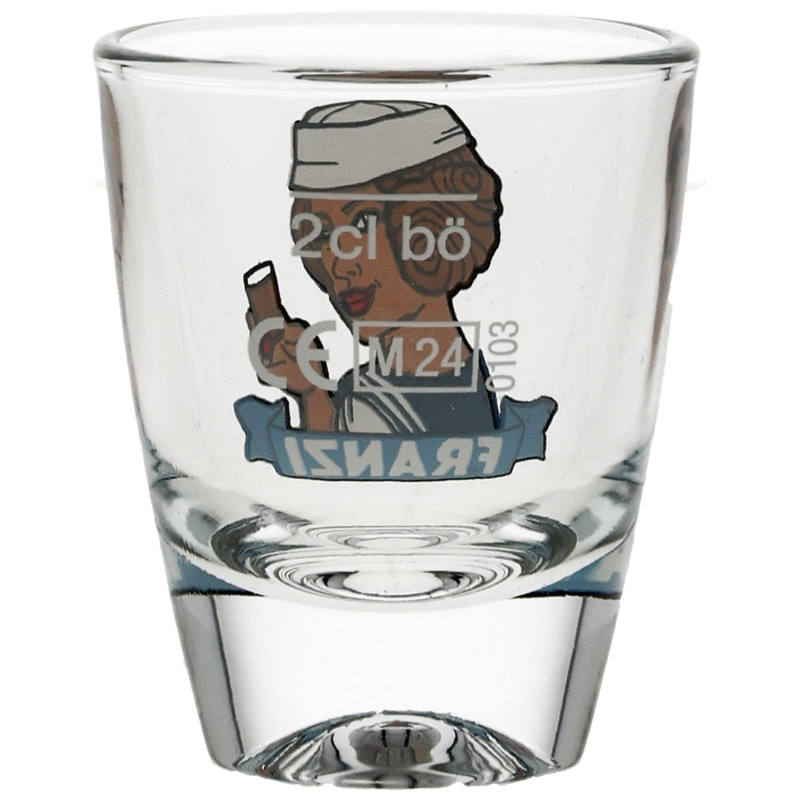 Manchmal braucht großes Glück kein großes Glas. Sondern genau 2cl. Willkommen beim Franzi-Glas, dem Original-Shotglas für den Kult-Likör Franzi Franzbrötchenlikör. Mit praktischem Eichstrich, damit wirklich jeder Schluck sitzt - norddeutsch korrekt, versteht sich.