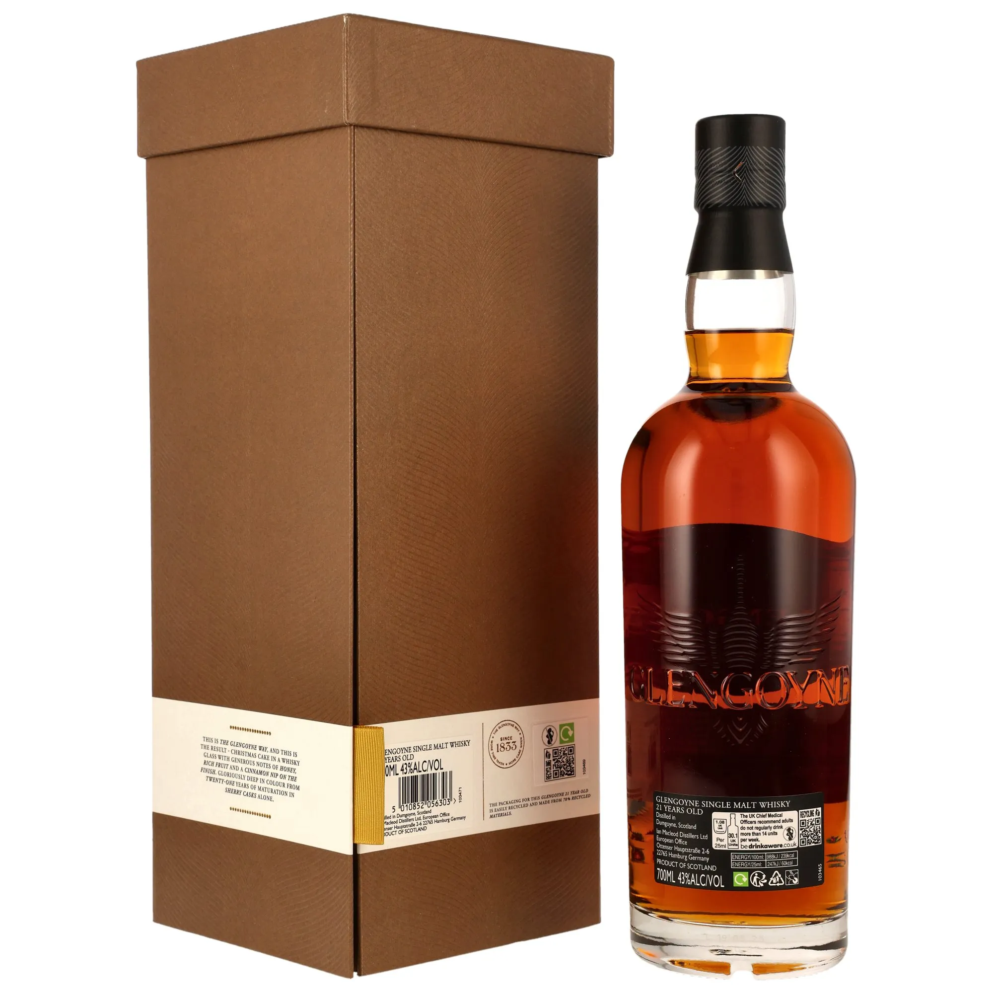 - Reife über die Zeit: 21 Jahre in ausgesuchten Sherryfässern gereift, verleiht er einen komplexen und reichen Charakter.
