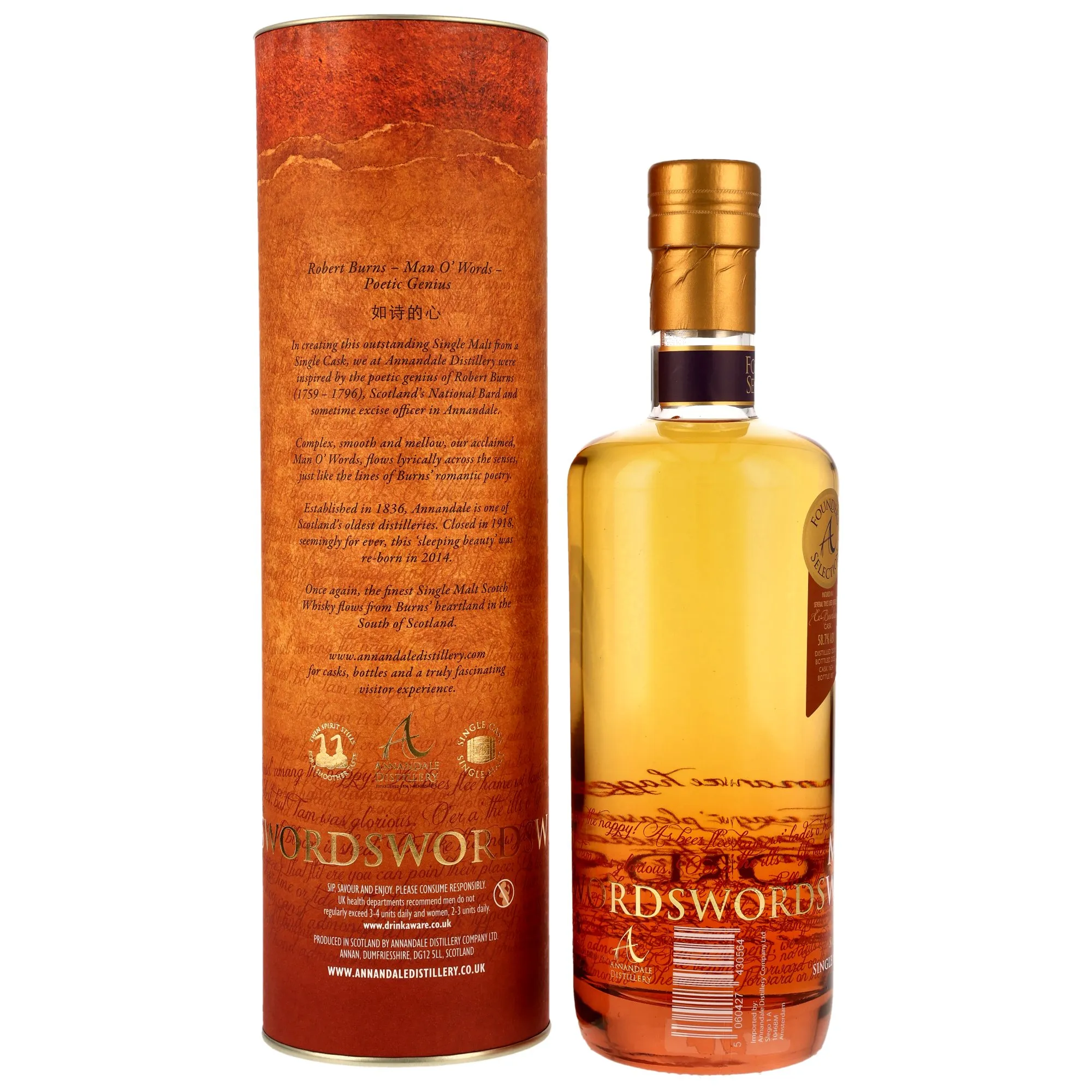 | Verantwortlicher Lebensmittelunternehmer: | Annandale Distillery Company LTD., Slego 1A, 1046BM Amsterdam, Niederlande |