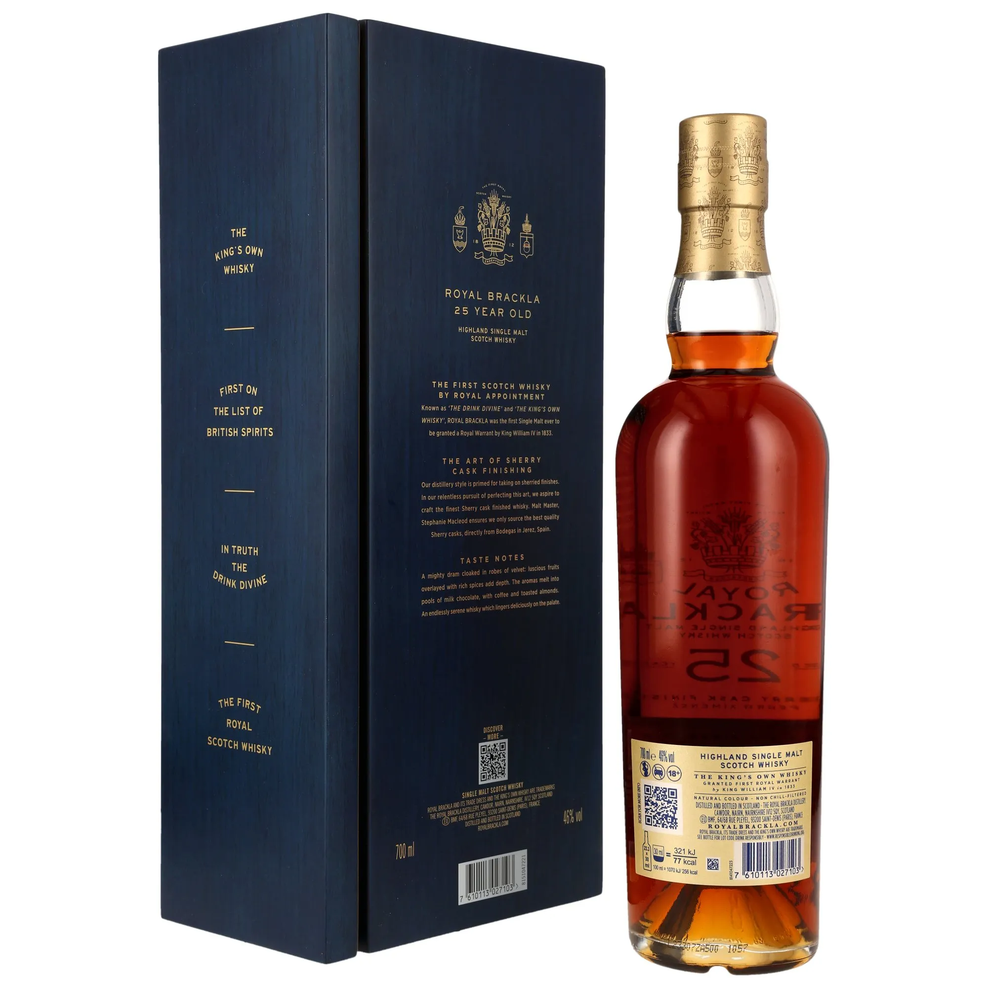 Der Royal Brackla 25 Jahre PX Sherry Cask Finish ist ein wahrhaft königlicher Whisky, der stolz auf seine schottischen Wurzeln ist. Die Destillerie, gegründet im Herzen der Highlands, blickt auf eine beeindruckende Geschichte zurück, die tief in der schottischen Tradition verwurzelt ist. Mit einem starken Fokus auf Qualität und Handwerkskunst hat Royal Brackla seinen Platz unter den besten Whiskys der Welt gefunden.