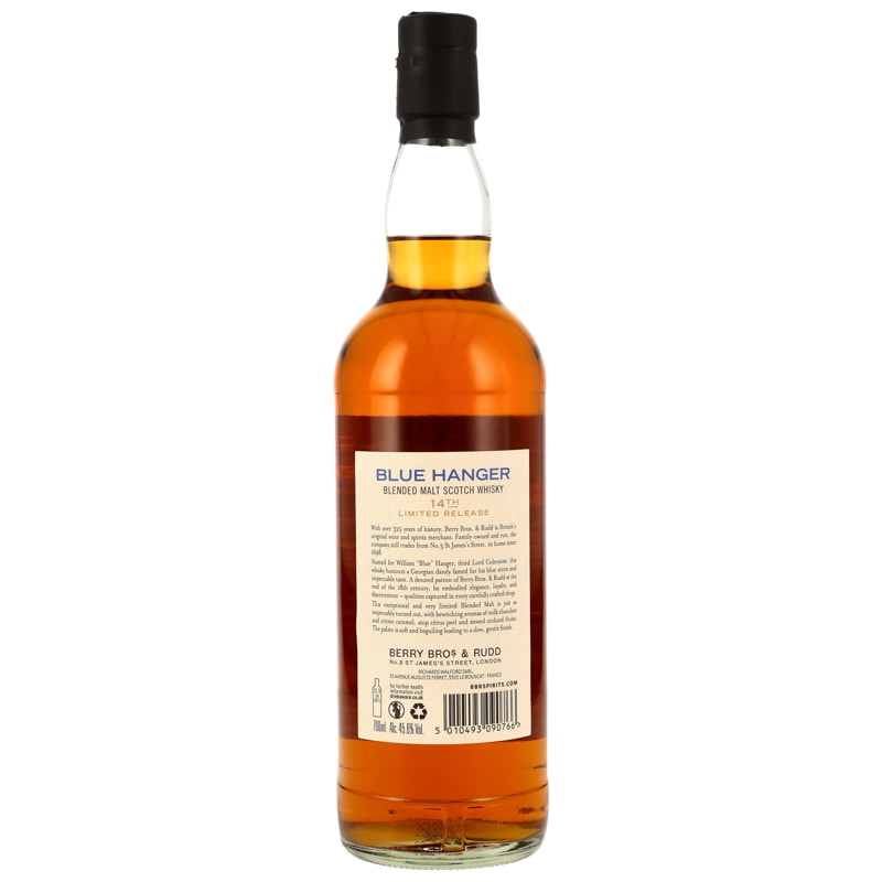 - Legendäre Herkunft: Teil der Blue-Hanger-Serie von Berry Bros. & Rudd, erstmals 1934 für den diplomatischen Export geschaffen.
