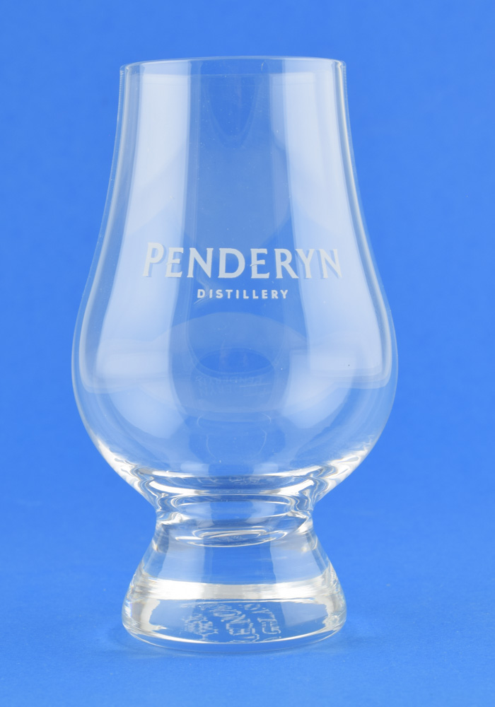 The classic British Glencairn Nosing glass with the logo of the Welsh distillery Penderyn.