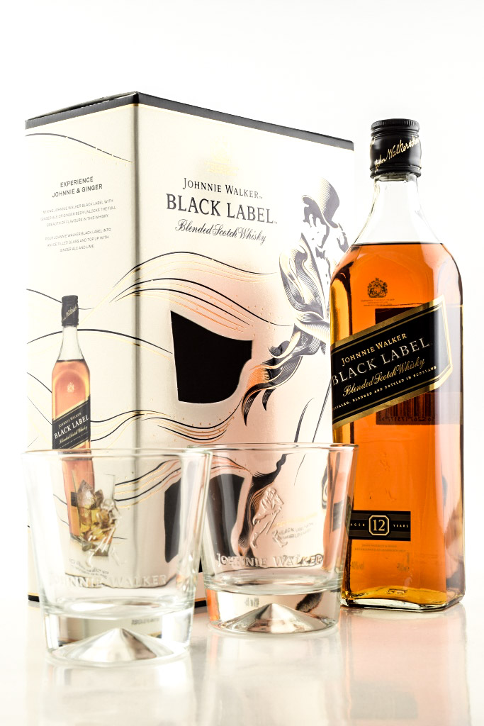 Johnny Walker's 12-year-old Black Label in an elegant, festive gift pack with two original Johnnie Walker tumblers!