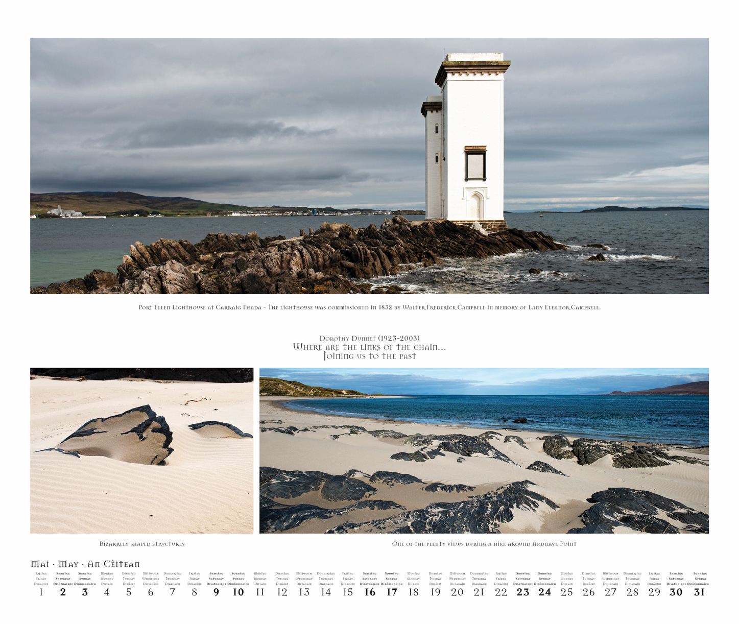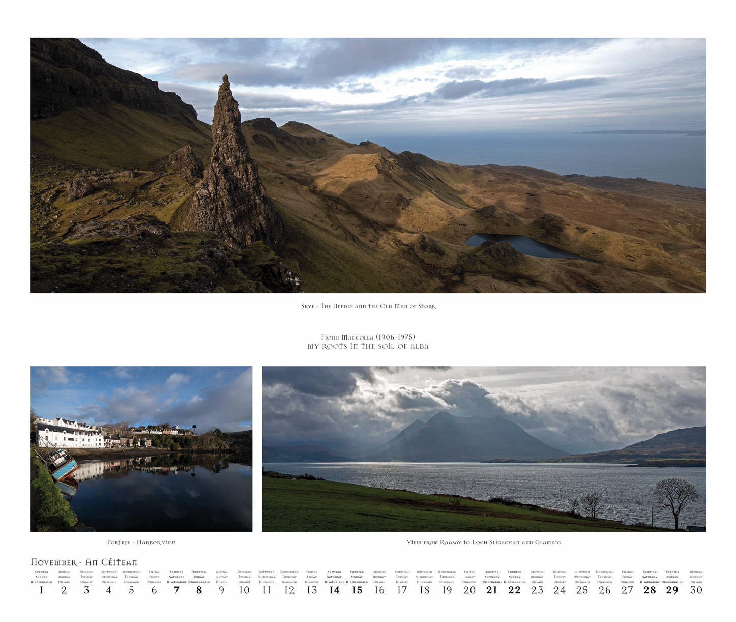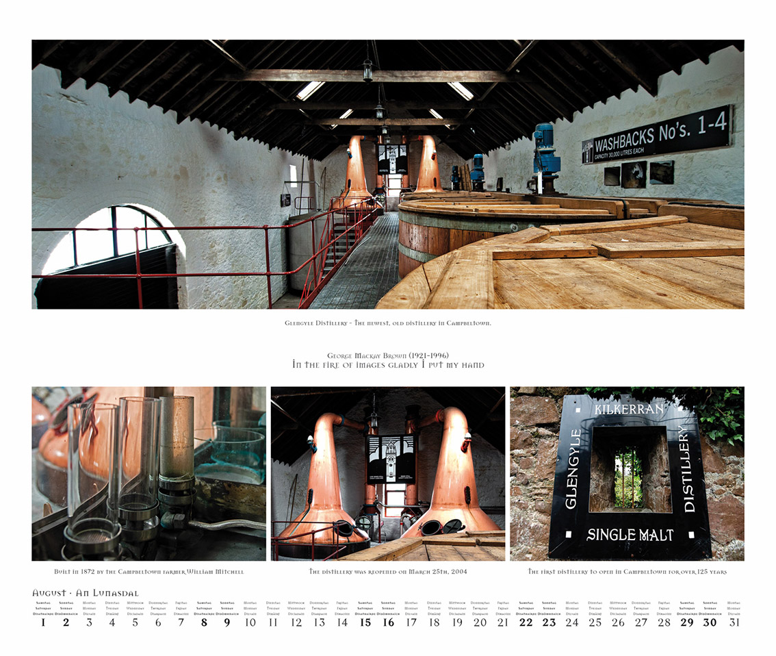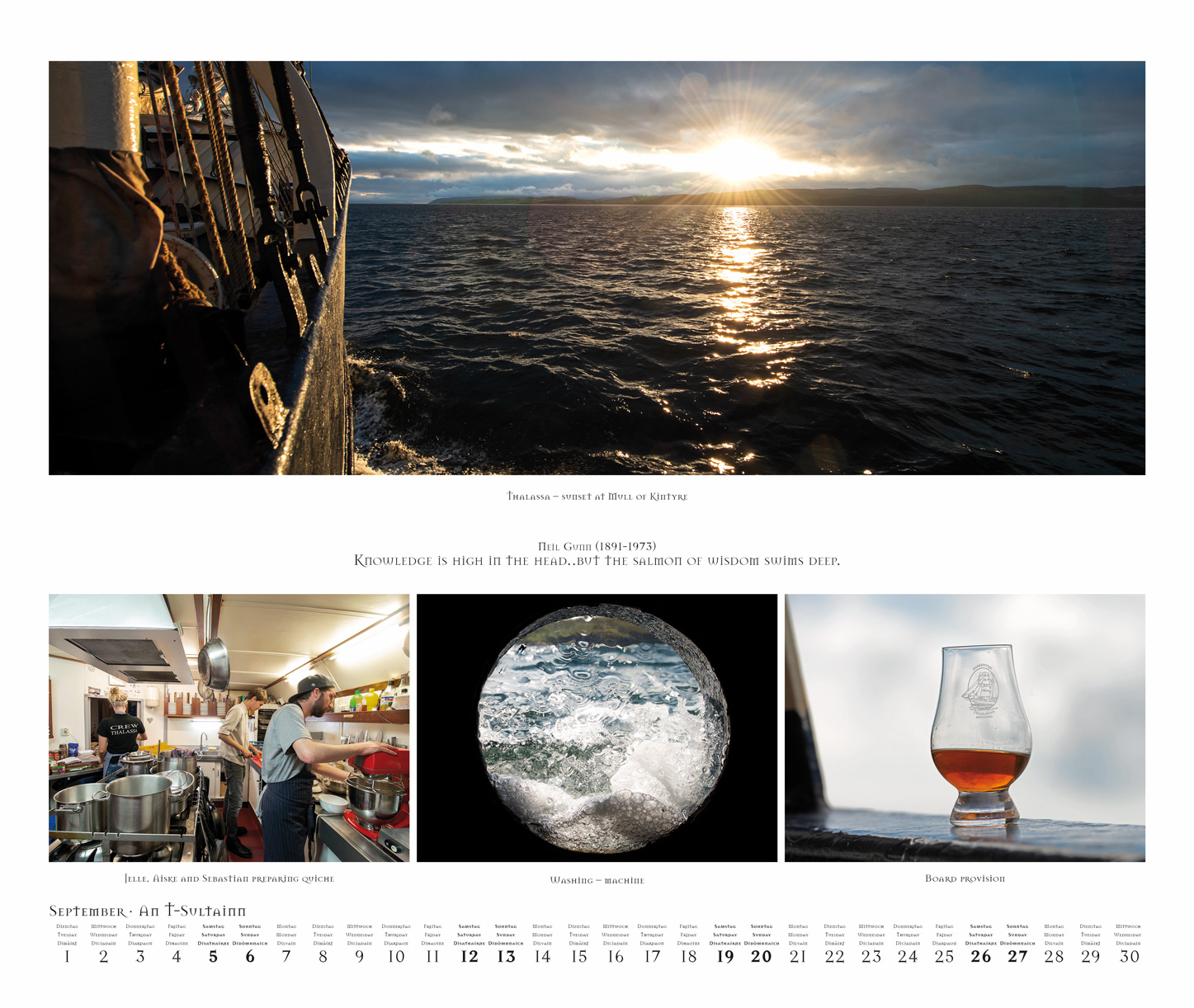 In the meantime an indispensable classic among Scotland and Whiskyliebhaber alike - the noble panoramic calendar of the German photojournalist Heinz Fesl. This year is the peculiarity of this calendar the trilingual calendar and the partially bilingual Poems (taken over from the Canongate Edinburgh) in English and Gaelic as well as the extremely high image and print quality.