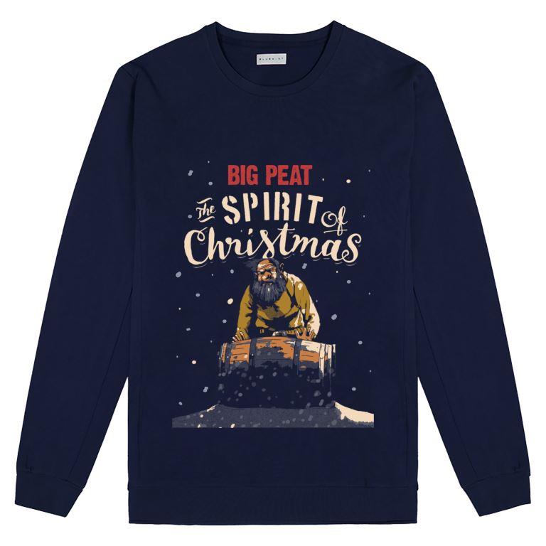 The original Big Peat Christmas sweater in dark blue with a high-quality color print.