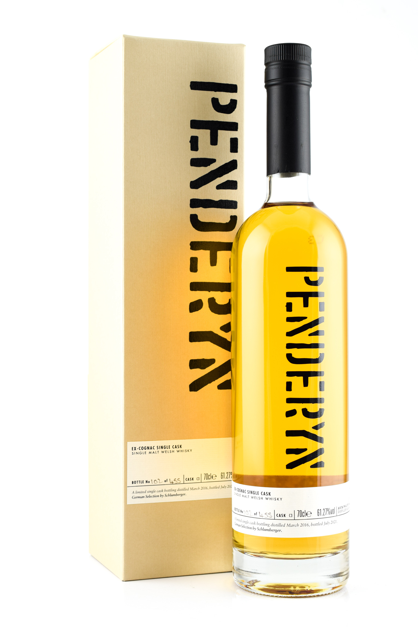 Distilled in March 2016, this one matured Single malt whisky from Penderyn in a single former cognac Cask and was bottled in July 2021.