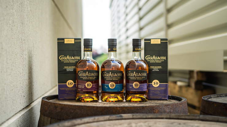 They are between 10 and 15 years old, were bottled at 48%vol. alcohol content, made on the same basis and matured in American Oak Bourbon Barrels before being given a finish in bare oak casks for around 18 months: the Single Malts of GlenAllachie's Limited Virgin Oak Series.