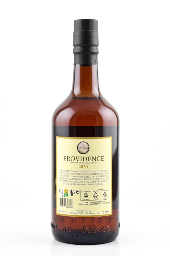 The Providence 2020 was made from the syrup of the ancient, aromatic Cristalline sugar cane variety, grown by Michel Sajous in Saint-Michel de l'Attalaye. Fermentation with yeast and dunder, the remaining product from previous distillations, also contributes strong aromas. According to Haitian tradition, the Haitian Pure Single Rum was distilled twice in a copper Müller still and matured for three years in former Providence casks that were newly burned and filled and emptied several times.