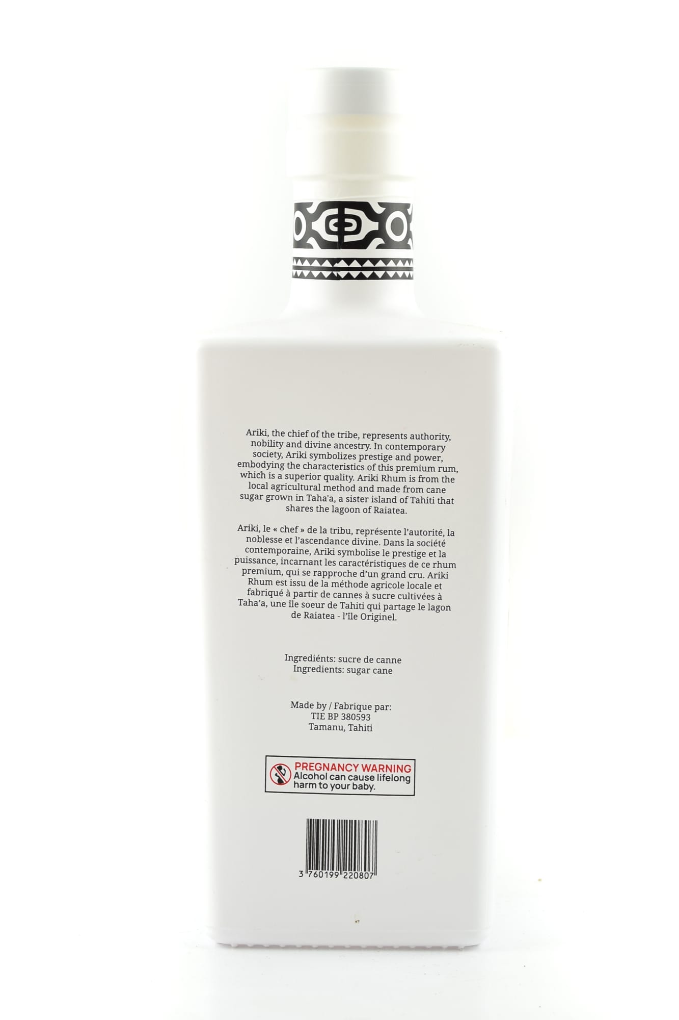 The Tahitians are sincere and warm-hearted, the waters are deep and opulent, and the land is lush and fertile. This is the home of Ariki - tribal chief - who symbolizes authority, prestige and power, and who is depicted on the bottle label of this White Rhum.