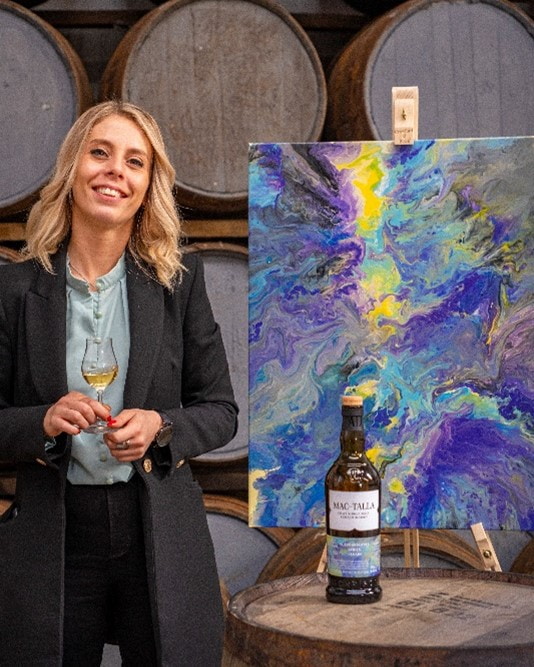 For the German exclusive bottling Mac-Talla Flavorsacapes Series: Cluain, the artist Marzia Sileno created a unique work of art; she transports the aromas and taste into the visual and thus creates unique images. During her visit to the Mac Talla team, it was very interesting to hear why she chose the colors and shapes that adorn each bottle after a sip of the new Flavorscapes bottling.