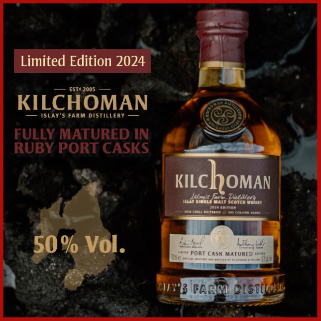 In autumn 2024, Kilchoman will surprise you with this elegant full Cask maturation, which has matured exclusively in former Ruby Port wine Casks, of which the youngest malt whiskies are six years old.