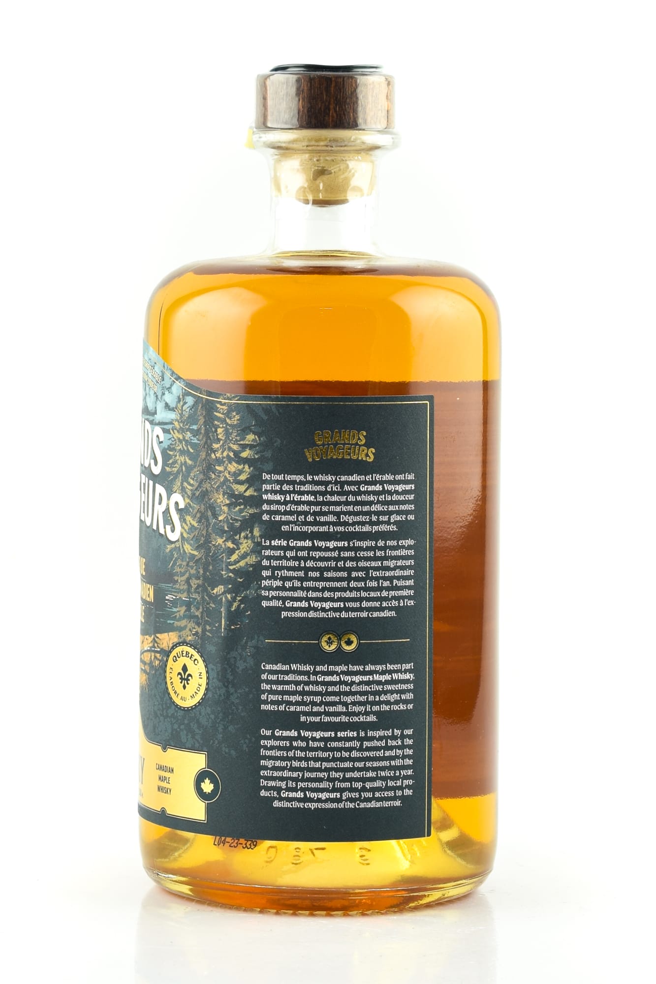 The high-quality Whisky Liqueur Grands Voyageurs Canadian Maple Whisky Liqueur combines the rich, smooth character of Canadian Whisky with the natural sweetness of real maple syrup. It seduces the nose and palate with a warm, velvety aroma that exudes notes of oak, vanilla and caramelized nuts with an unmistakable, sweet maple nuance that lingers for a long time. This delicious Whisky Liqueur is homage to the nature of Canada and its long tradition of Whisky production.