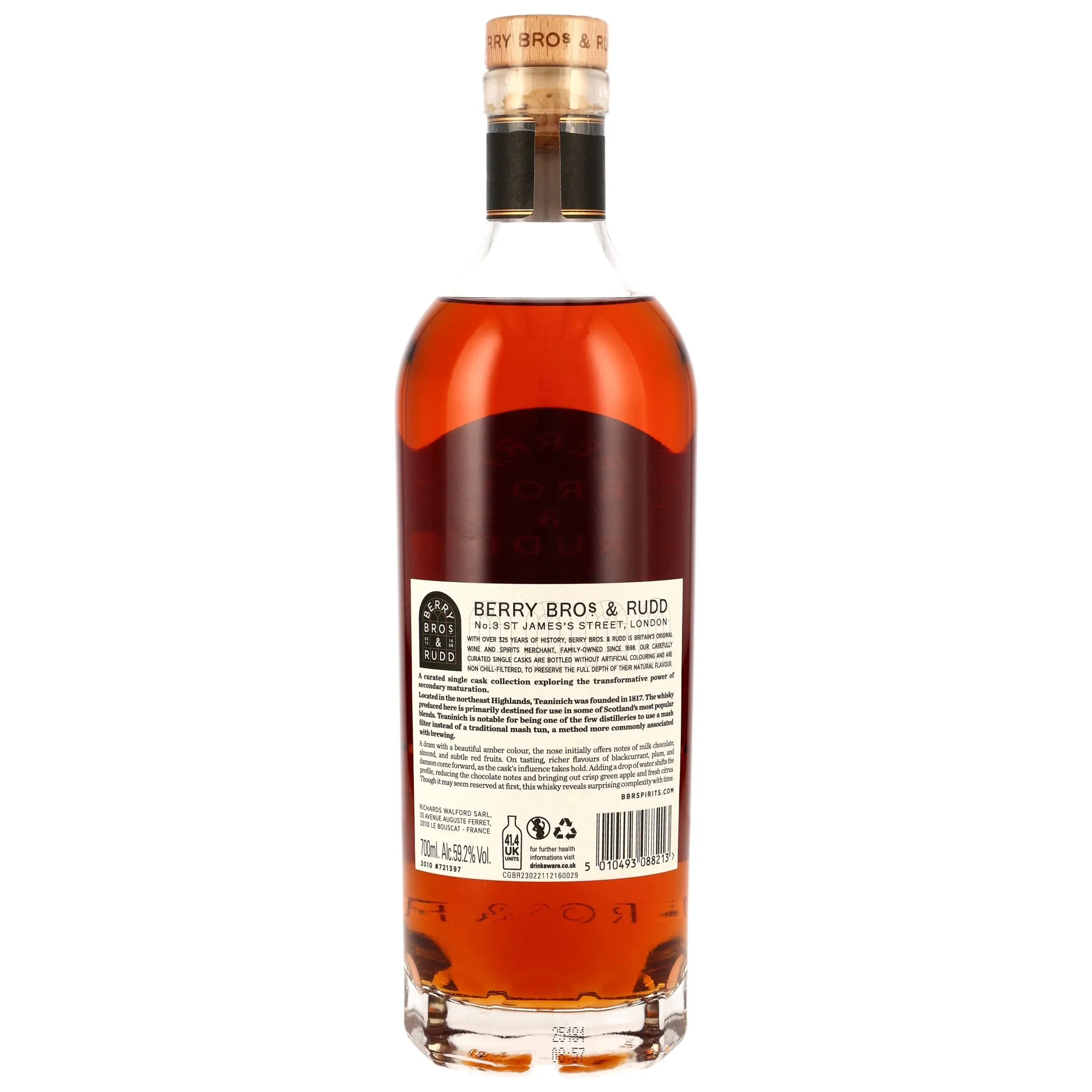 The careful selection of raw materials and the artisanal production reflect the passion and expertise of Berry Bros. & Rudd. What’s special about this Teaninich is the balance of sweetness and spice that captivates the connoisseur, providing an incomparable tasting experience.