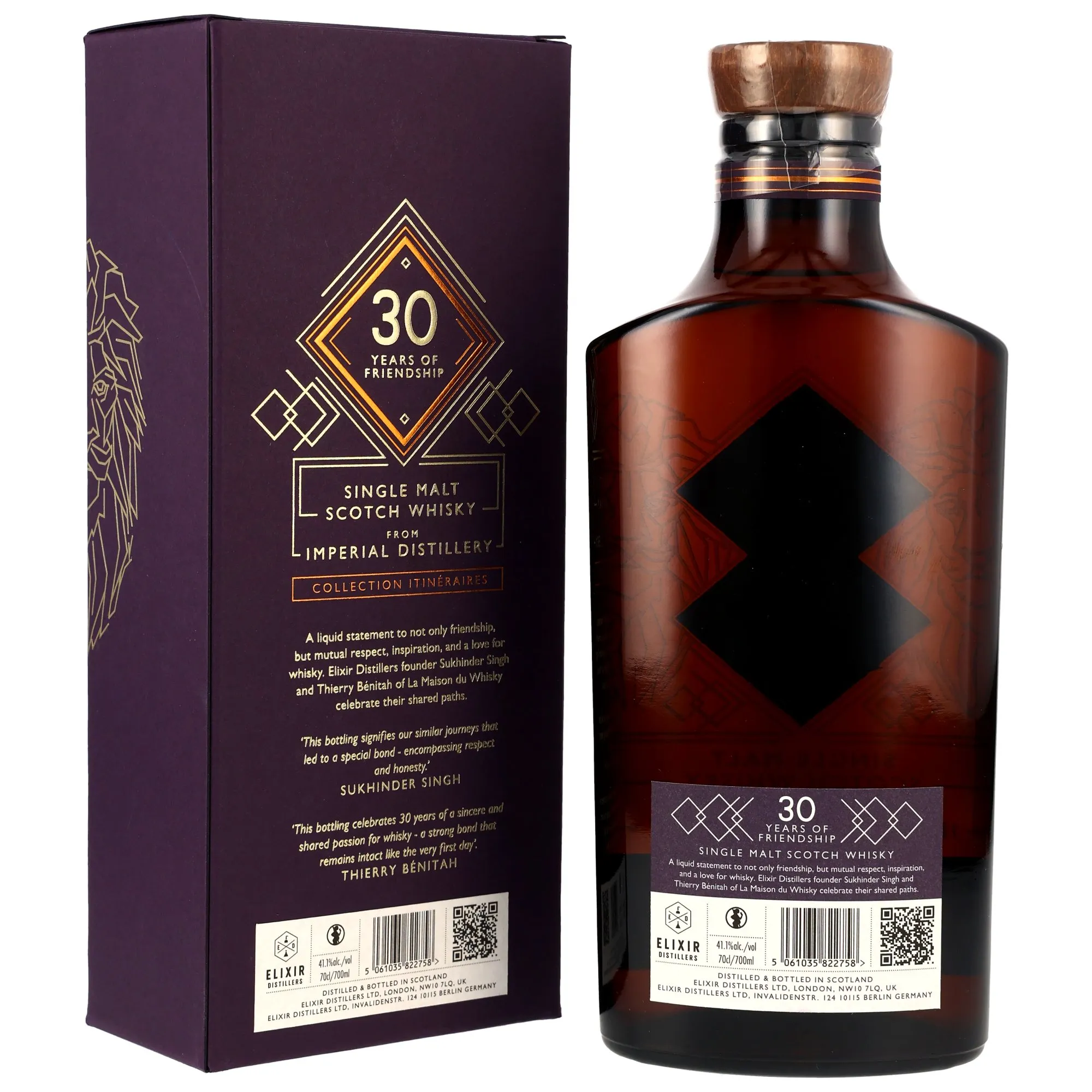 The Imperial 30 years 1994 30 years of friendship is more than just a whisky; it is a legend among Scottish single malts. Produced at the iconic Imperial Distillery, known for its exceptional craftsmanship, this whisky has utilized time to perfect itself. Its 30 years of aging not only grant it depth but also a remarkable complexity that delights connoisseurs and collectors alike.