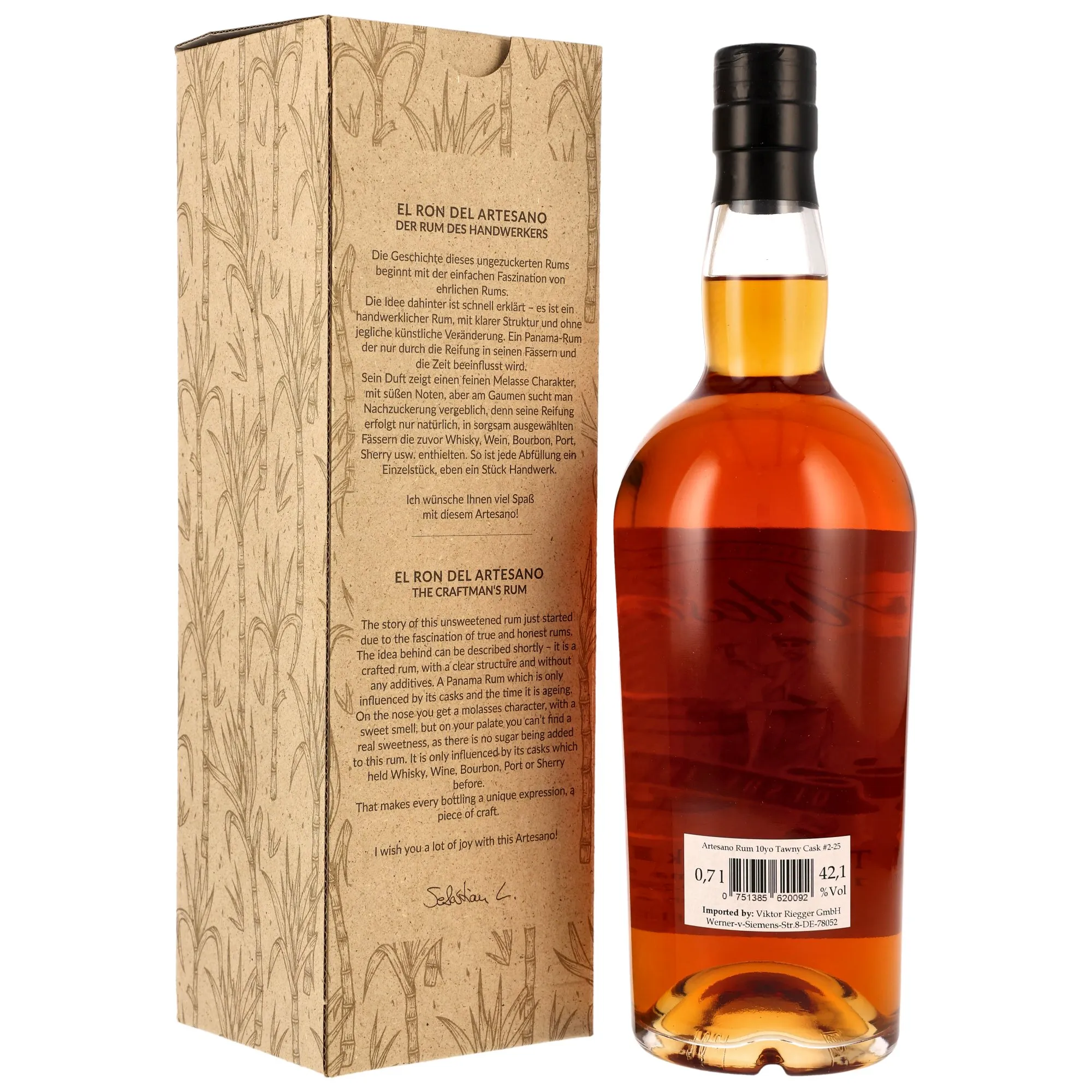 The Ron Artesano Rum originates from the lush growing regions of Panama, where warm temperatures and fertile soils create the perfect environment for sugarcane harvesting. After traditional distillation, this rum matures for a full 10 years in carefully selected Tawny Port barrels, imparting not only unparalleled depth but also a sweet touch.